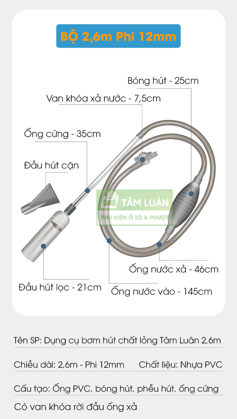 Hút nước bể cá, dụng cụ thay nước bể cá, hút cặn bể cá, dụng cụ bơm hút chất lỏng đa năng TÂM LUÂN Chổi lau tẩm dầu