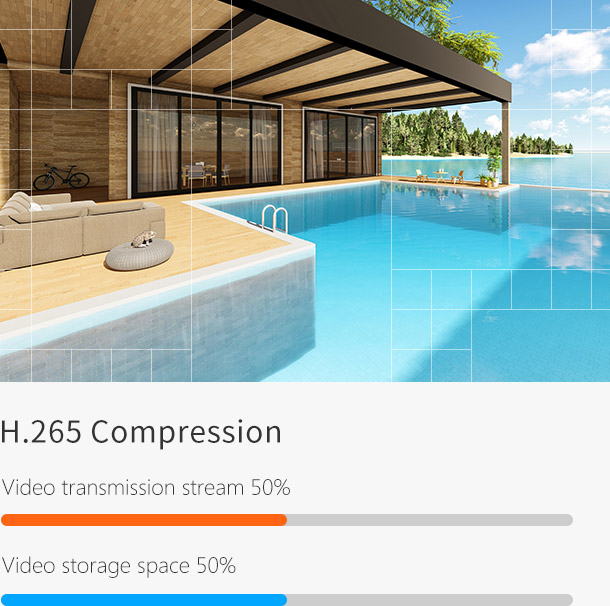 Cảm biến 1080P và thuật toán IR tiên tiến cung cấp video rõ nét cả ngày lẫn đêm. Nén H.265 tiên tiến giúp giảm 50% băng thông mạng và mức sử dụng bộ nhớ ở cùng chất lượng video.