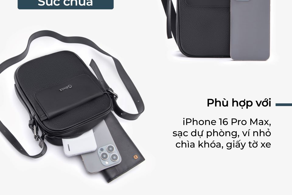 Giới thiệu Túi Đeo Chéo Cỡ Nhỏ Túi Nam Công Sở GENCE TD05 Da Bò Cao Cấp Màu Đen Dáng Dọc