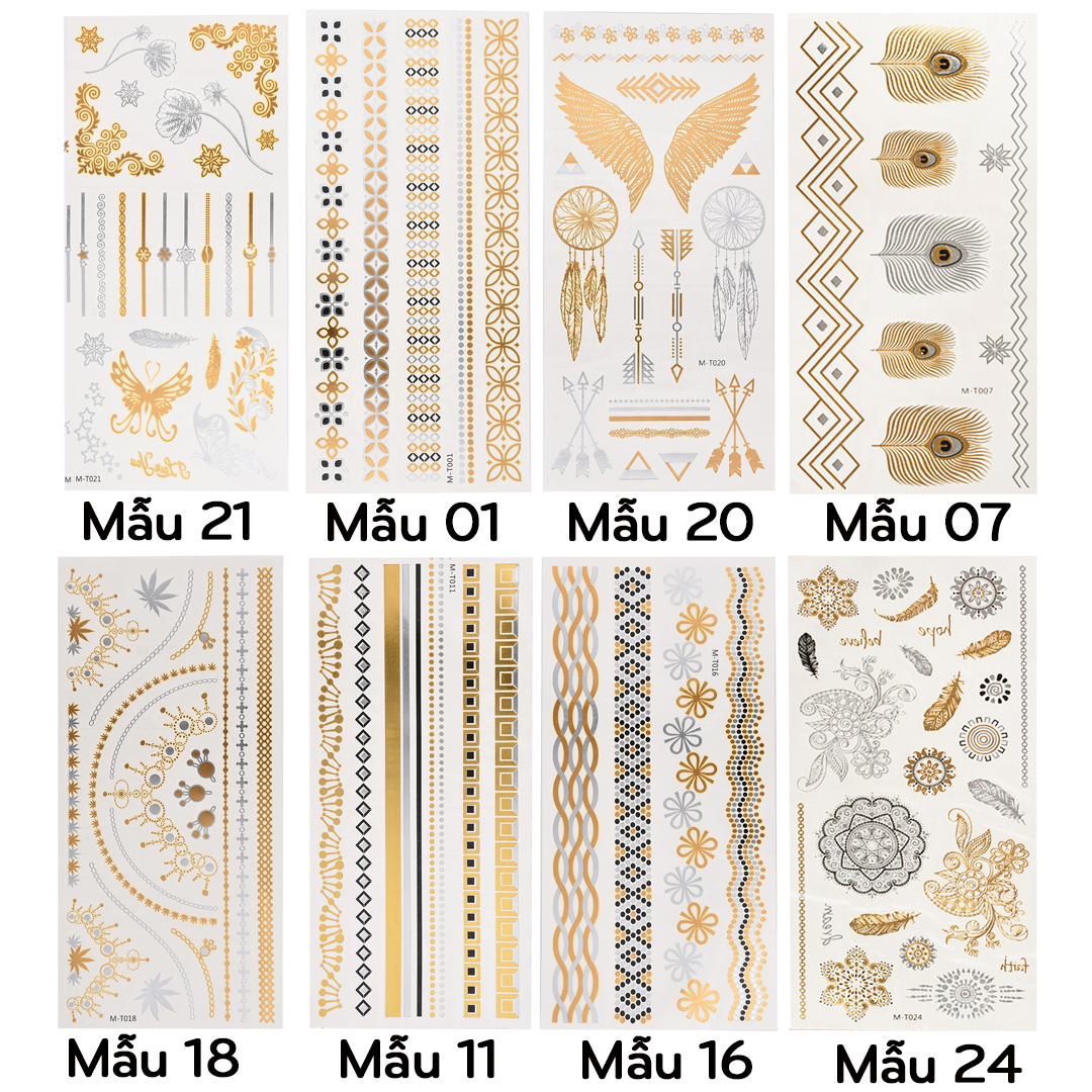 Mua (Chọn mẫu) Hình xăm dán ánh kim, miếng dán xăm nhũ tạm thời henna tatoo vòng tay, băng tay Legaxi giá rẻ nhất ở đâu?Giới thiệu (Chọn mẫu) Hình xăm dán ánh kim, miếng dán xăm nhũ tạm thời henna tatoo vòng tay, băng tay Legaxi