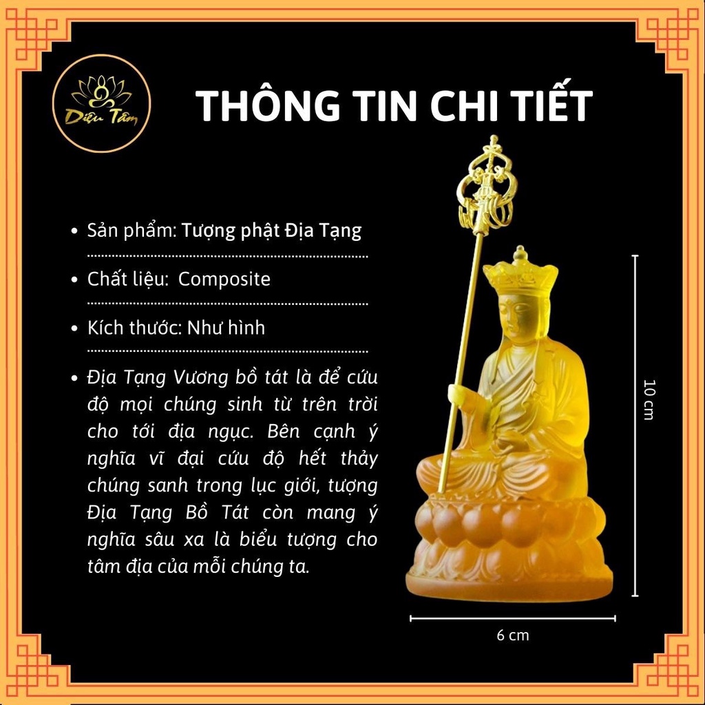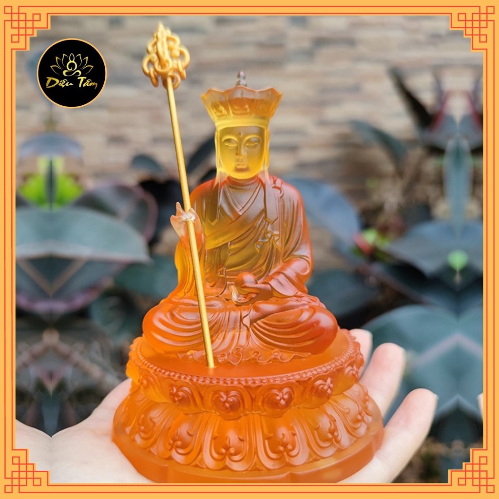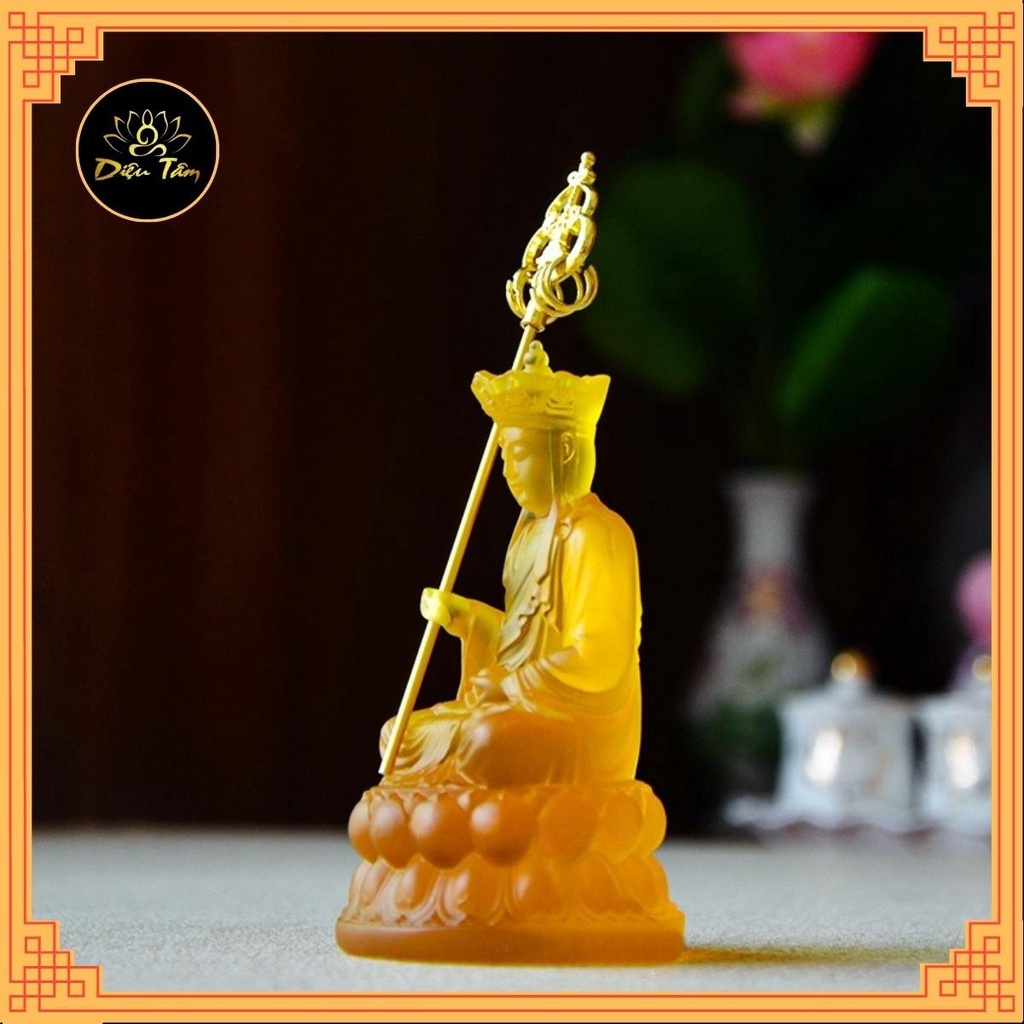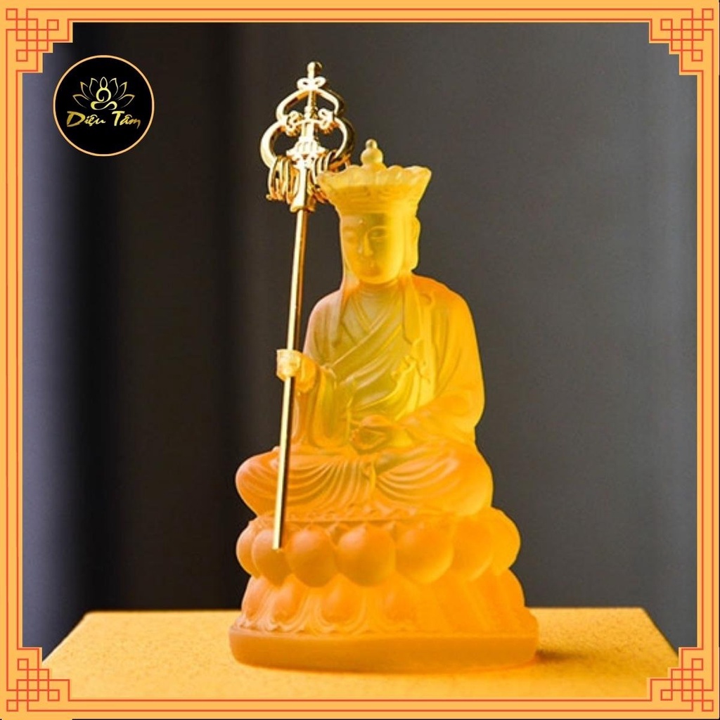 -Tượng phật địa tạng vương bồ tát cao 10cm chất liệu composite giả lưu ly màu vàng như hình: