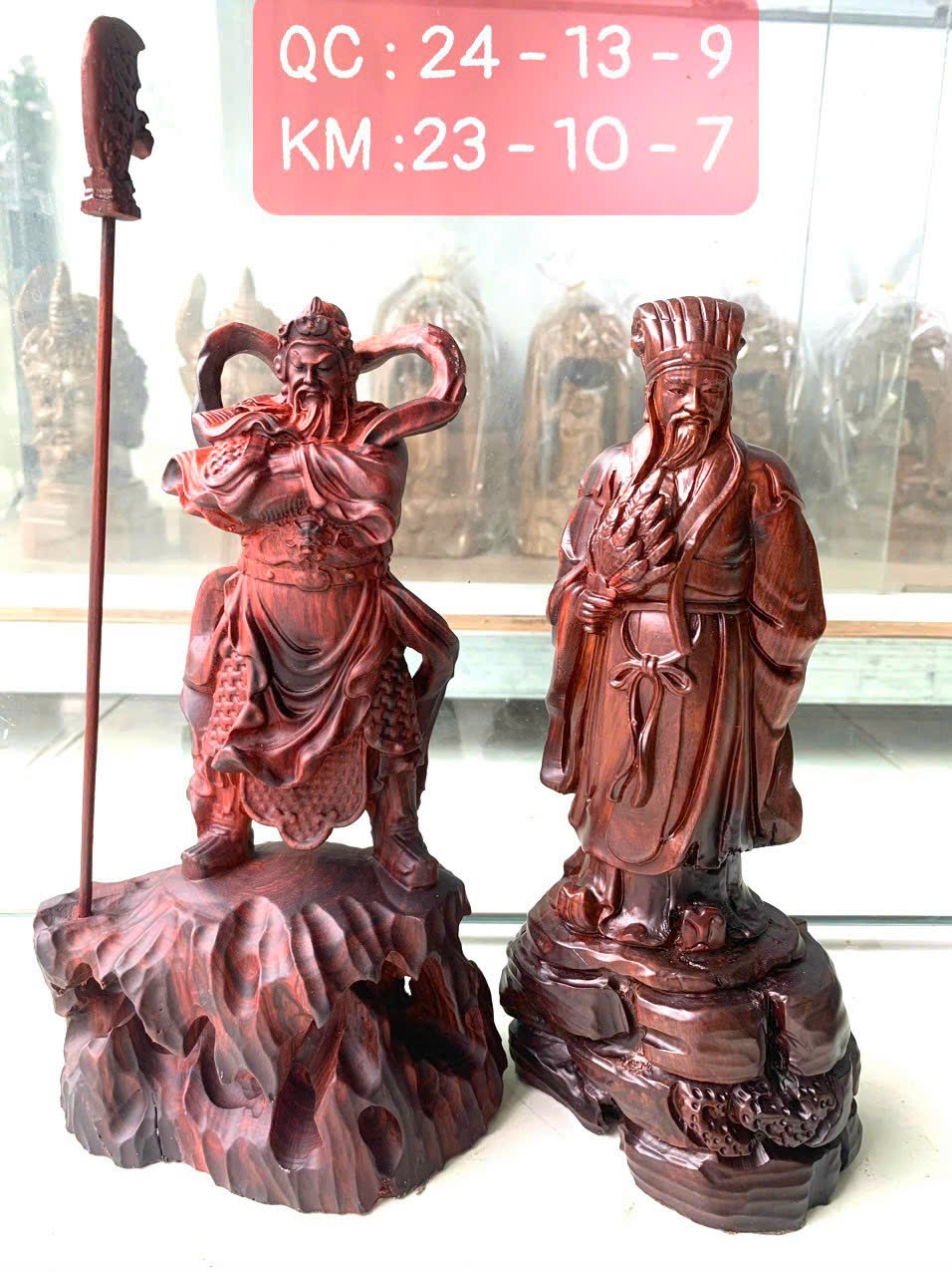 Cặp quan văn quan võ khổng minh gia cát lượng và quan công bằng gỗ trắc đỏ đen đẹp long lanh