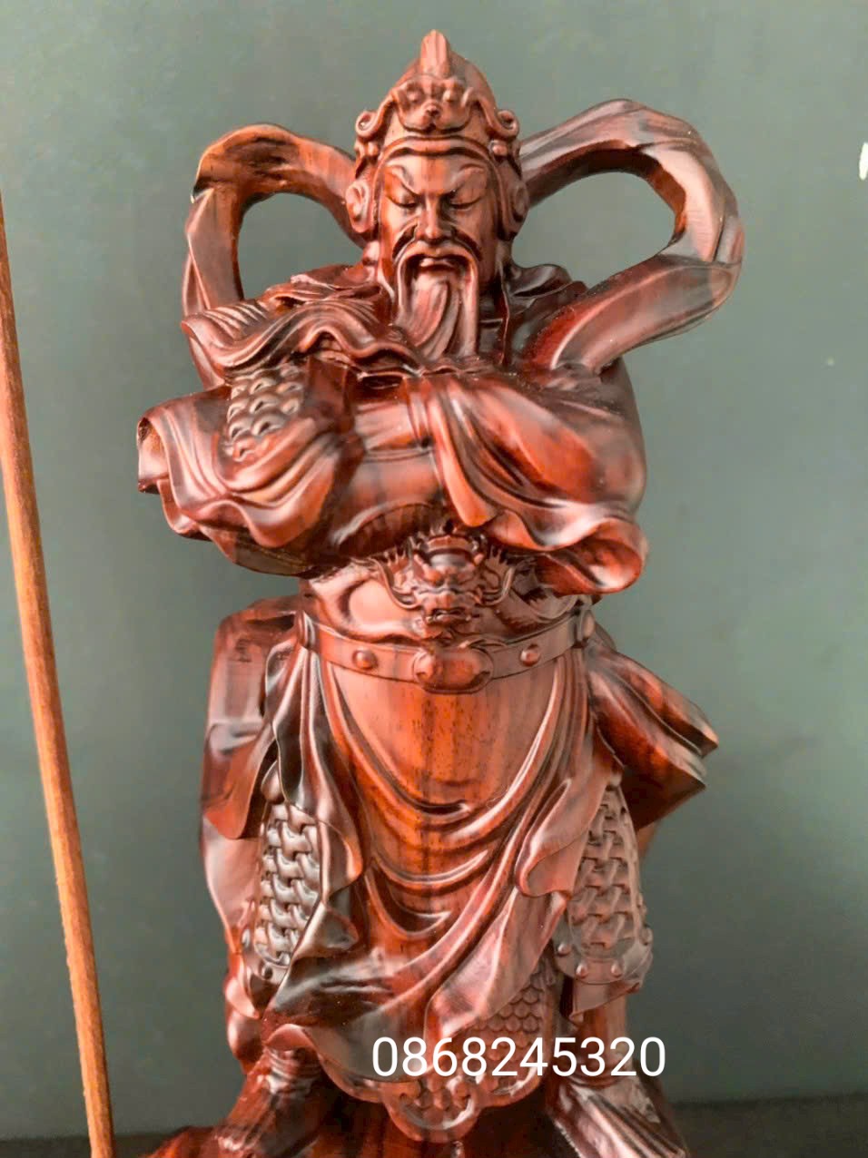 _ Cặp tượng khổng minh gia cát lượng và tượng quan công được làm bằng chất liệu gỗ trắc đỏ đen liền khối tự nhiên 100%
