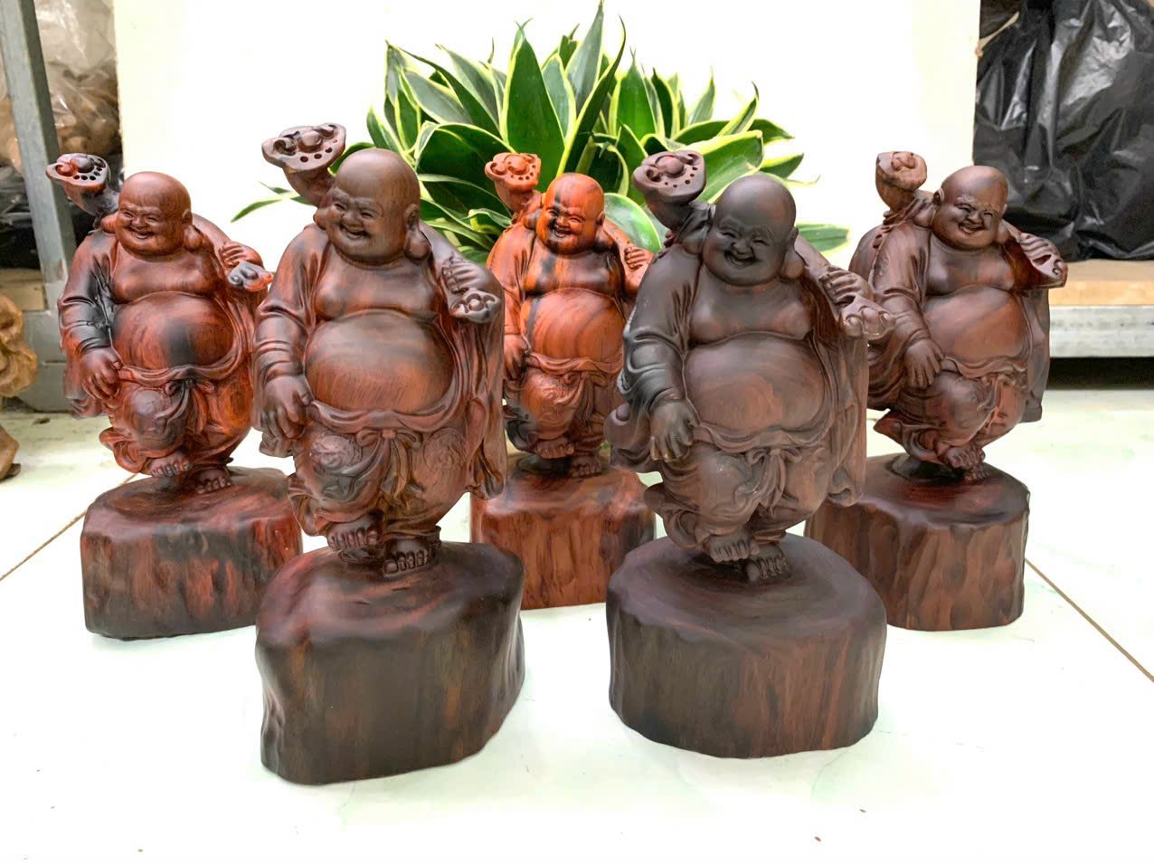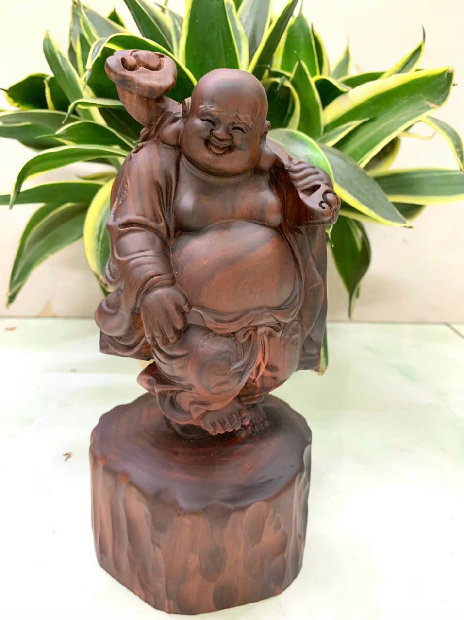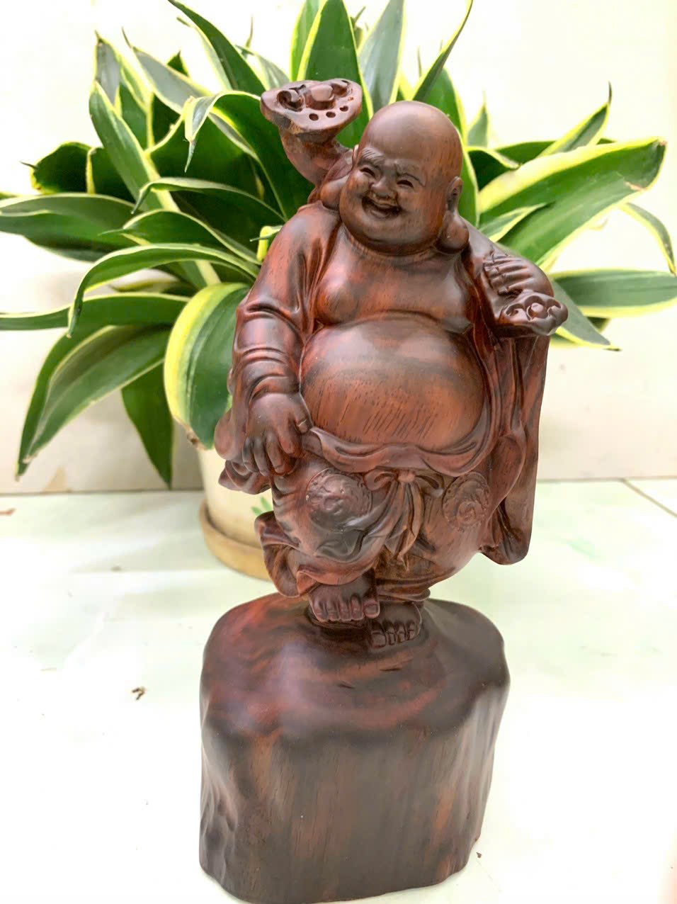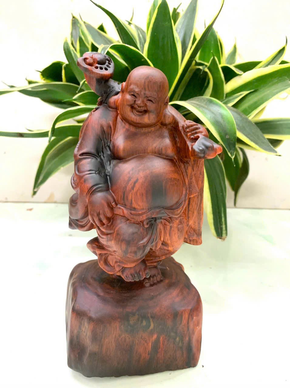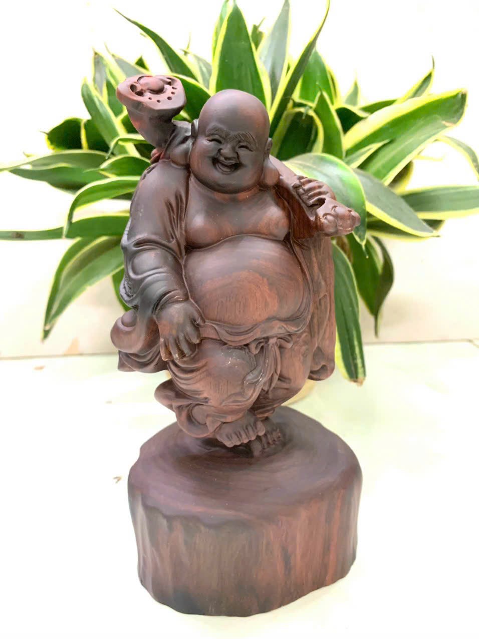 Giới thiệu Tượng phật di lặc vác tải vàng bằng gỗ trắc đỏ đen đẹp long lanh kt cao 20cm
