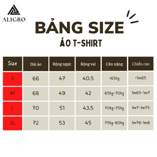 ️ HƯỚNG DẪN CHỌN SIZE Áo T-shirt ALIGRO