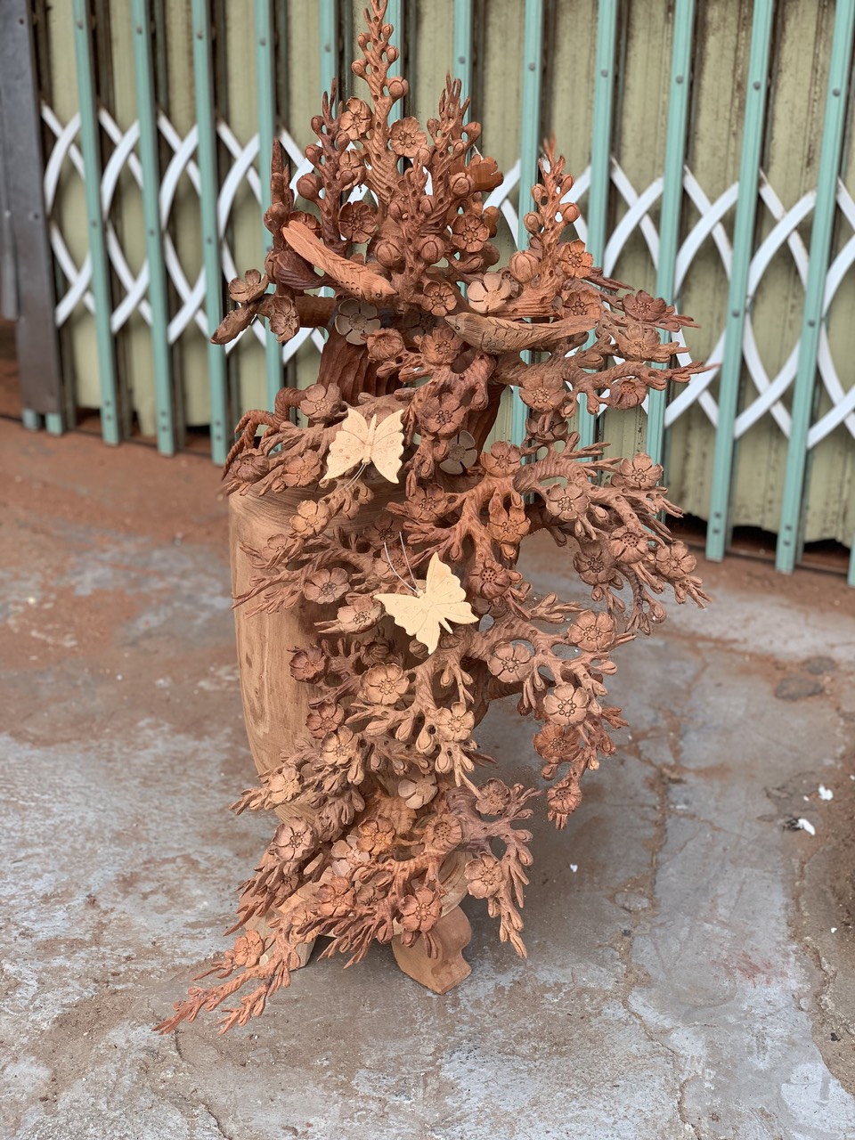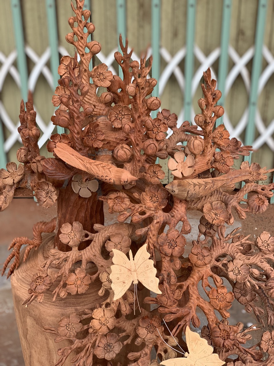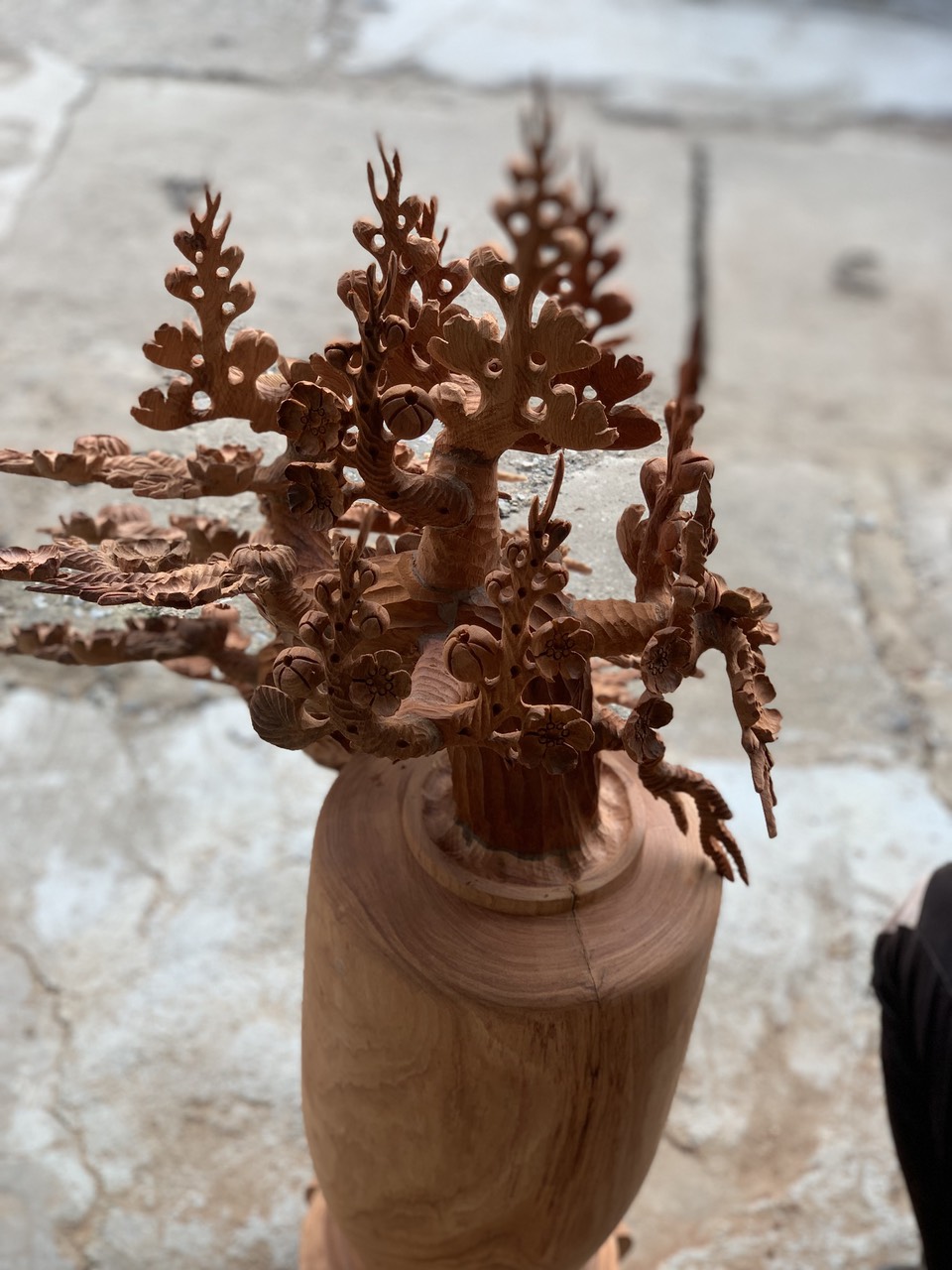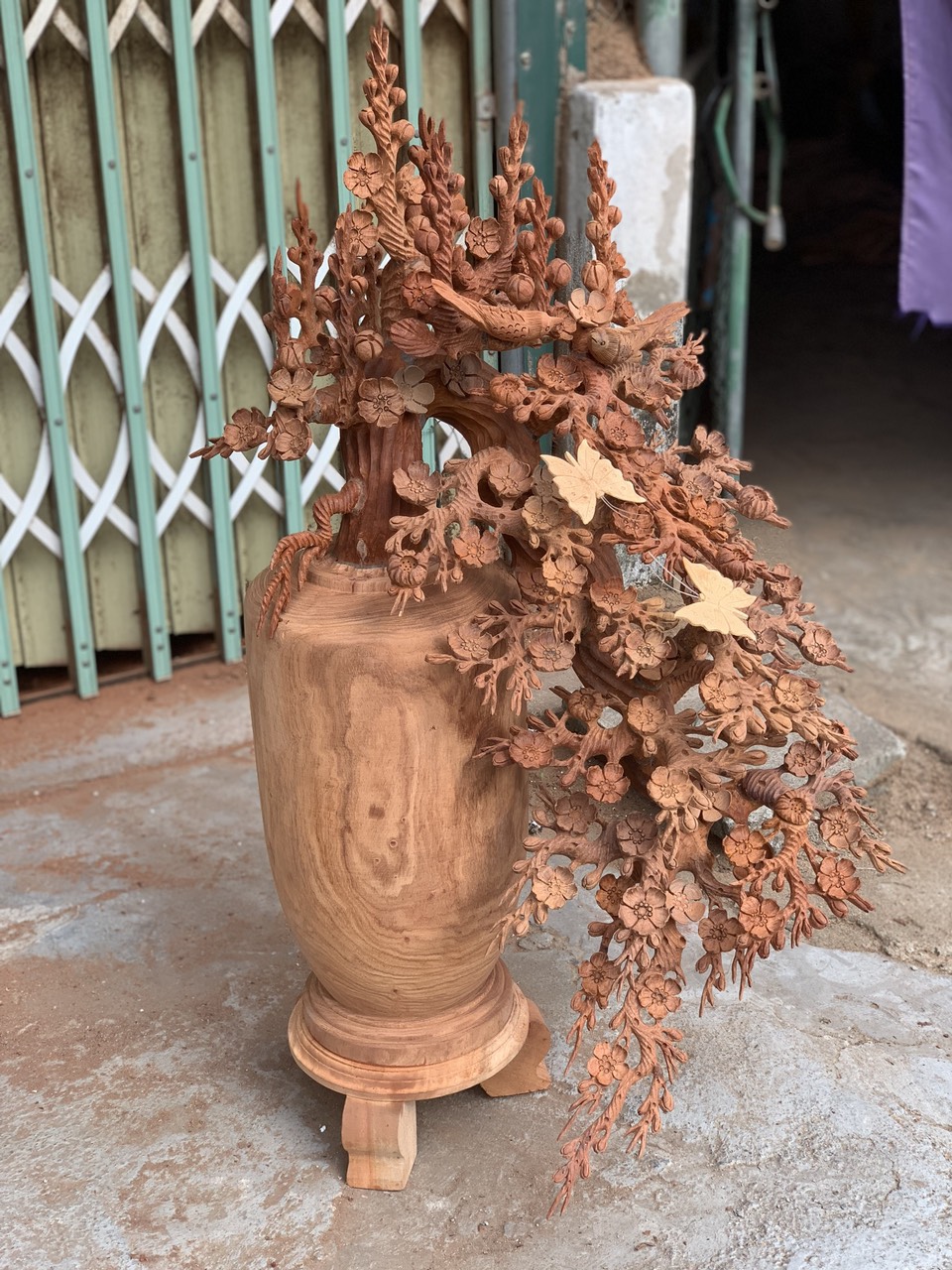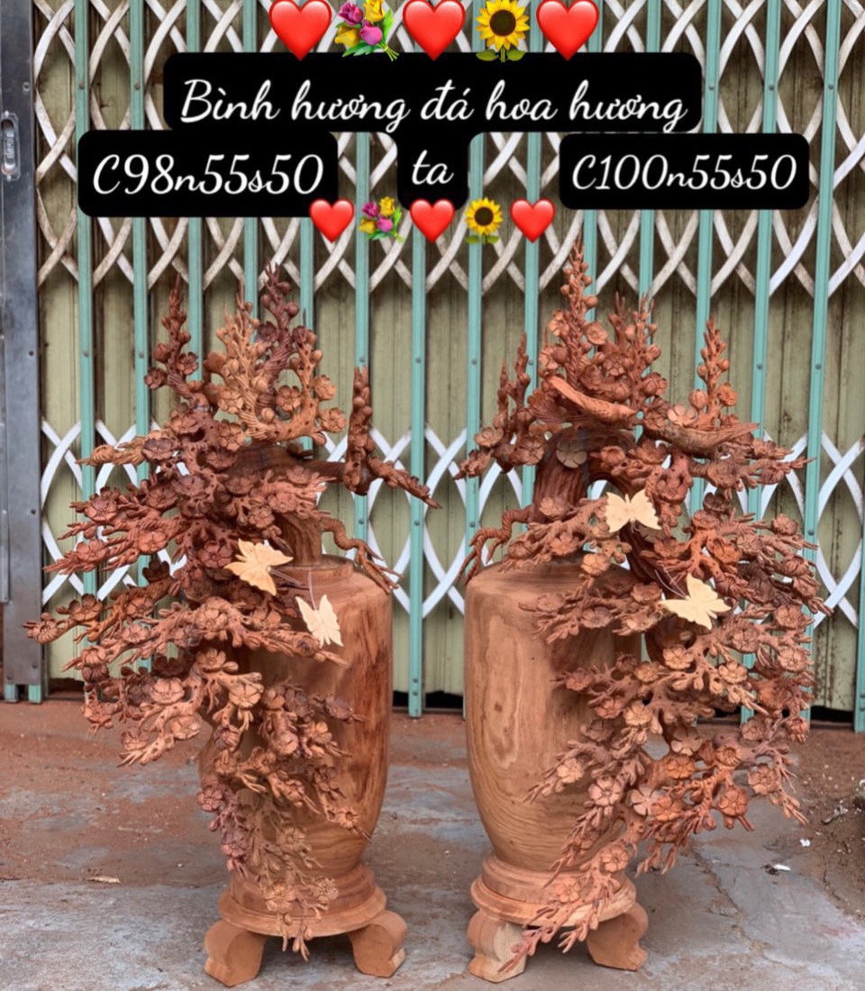 Giới thiệu 1 bình hoa mai lan dáng huyền phong thủy cầu tài lộc bằng gỗ hương kt 98×55×50cm