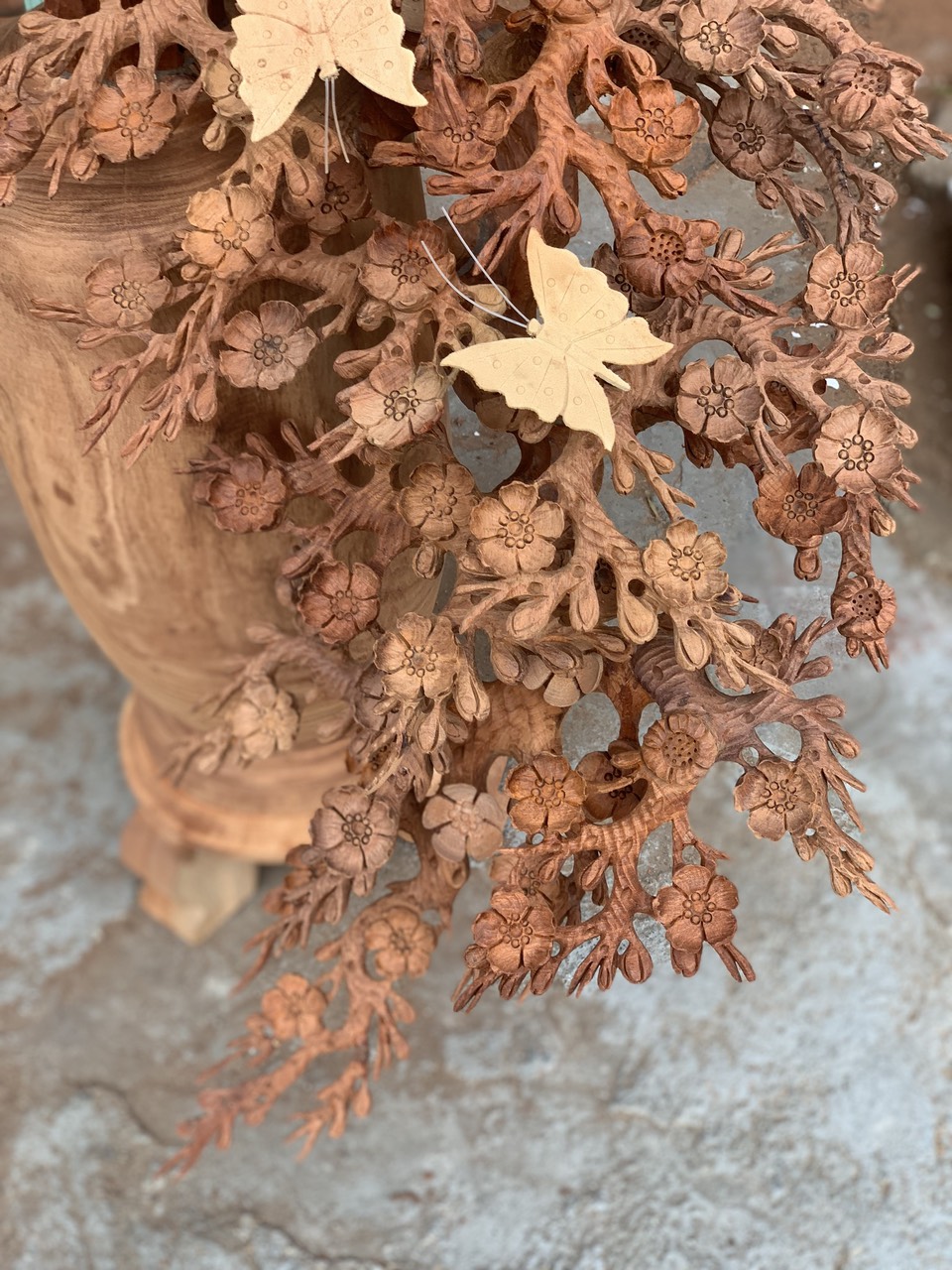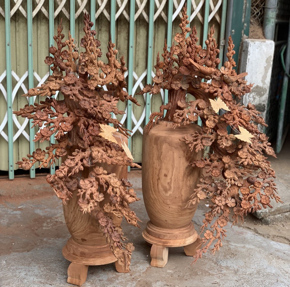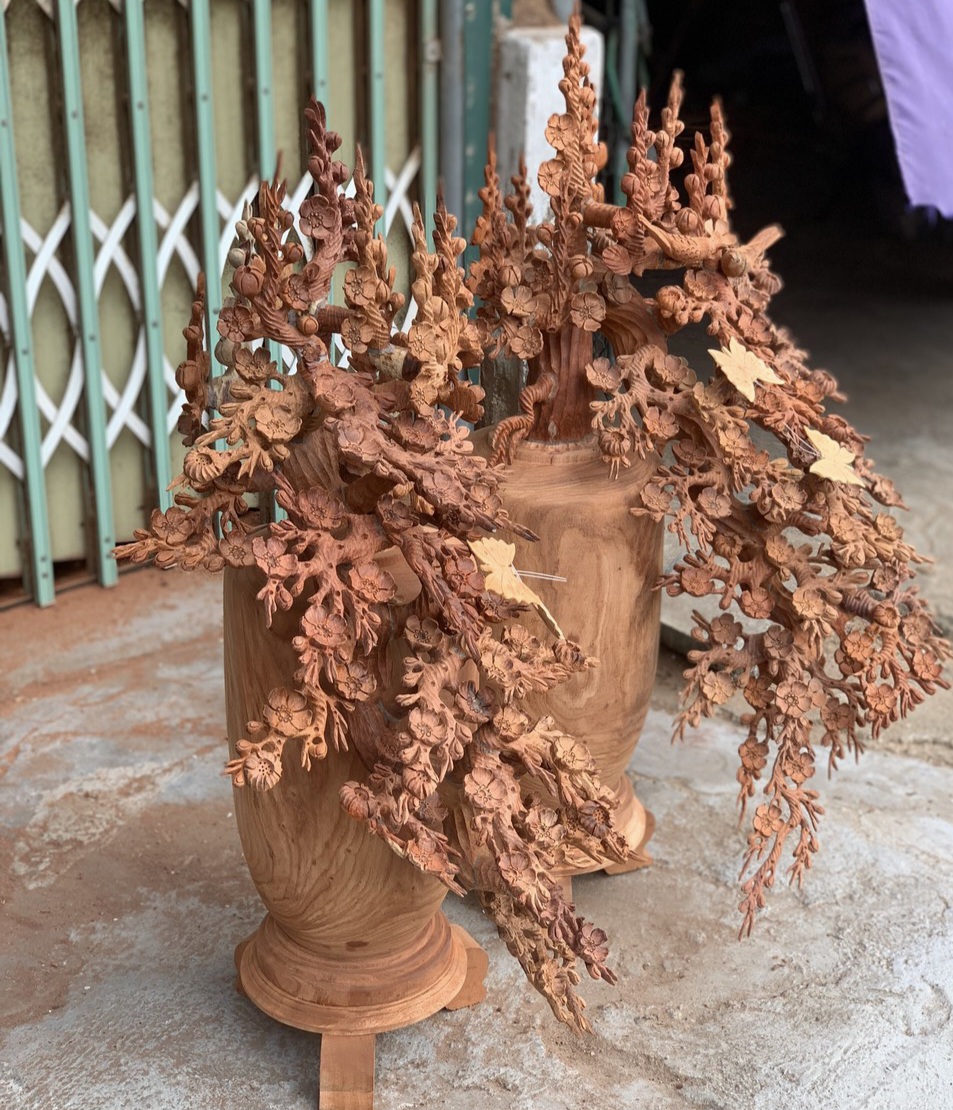 _ 1 bình hoa mai lan được làm bằng chất liệu gỗ hương tự nhiên 100%