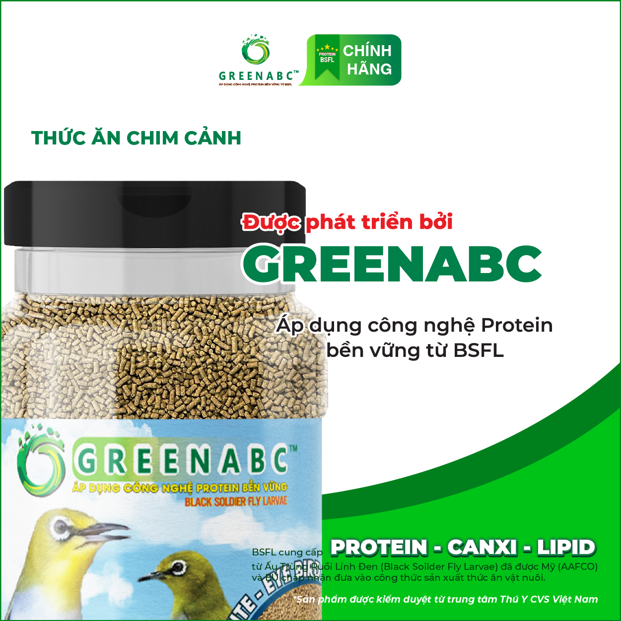 GREENABC là thức ăn cao cấp dành cho CHIM VÀNH KHUYÊN. Đặc biệt sản phẩm GREENABC được sản xuất theo phương pháp Áp dụng công nghệ PROTEIN bền vững từ bột đạm rất giàu PROTEIN – CANXI – LIPID có trong BSFL*, đã được Mỹ (AAFCO)* và EU chấp nhận đưa vào công thức cho ngành sản xuất thức ăn cho vật nuôi.