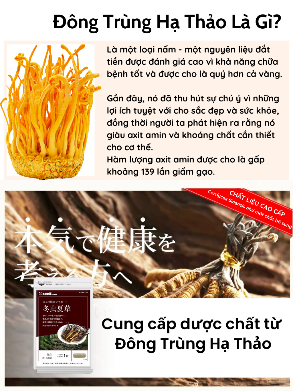 Nhập mã TECKITKBD FREESHIP 20k cho đơn 0đ tại Tiki.Vn Giới thiệu Viên Uống Tăng Cường Đề Kháng, Miễn Dịch Chiết Xuất Đông Trùng Hạ Thảo Seedcoms Nhật Bản