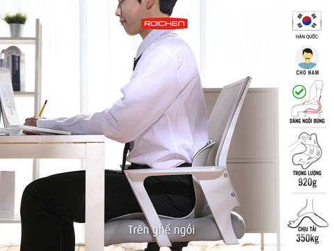 Ghế chỉnh dáng ngồi đúng cho Nam từ thương hiệu Roichen Hàn Quốc được thiết kế giúp cho người dùng duy trì tư thế ngồi đúng một cách thoải mái, vững chãi, đưa cột sống quay trở về đường cong sinh lý. Điều này giúp ngăn ngừa các bệnh văn phòng do ngồi nhiều như đau lưng, cổ, vai, gá Chỉ cần đặt ghế Roichen lên để ngồi là dễ dàng nâng cấp những chiếc ghế thông thường thành ghế công thái học.