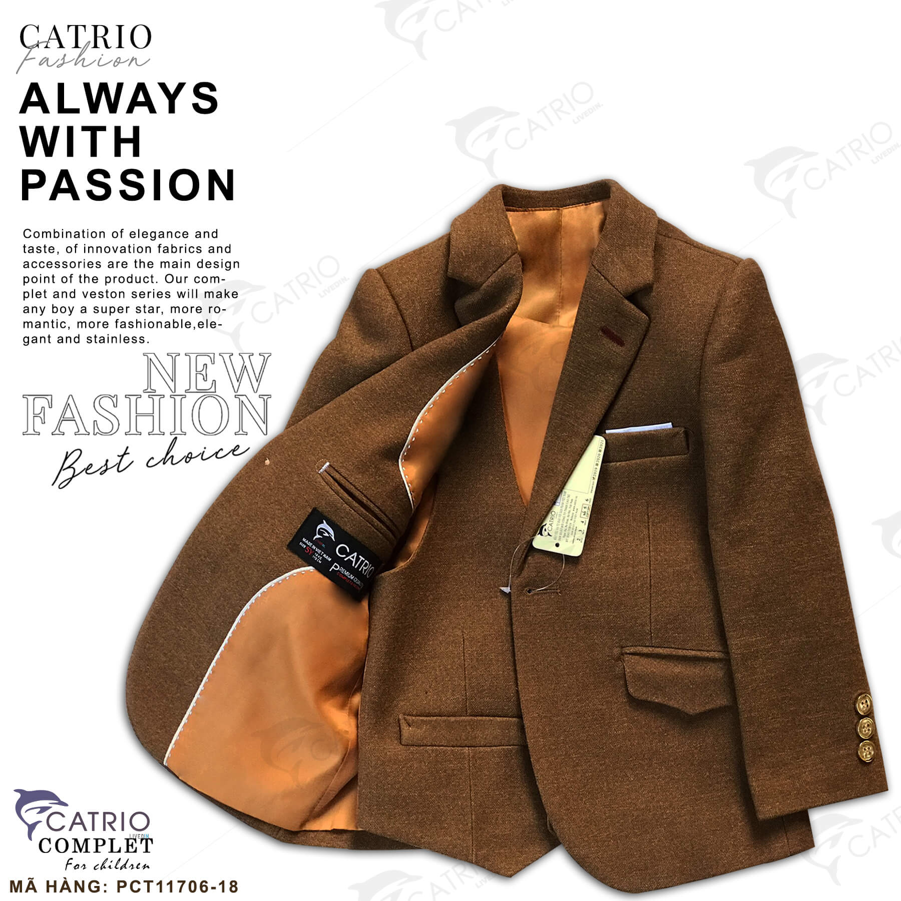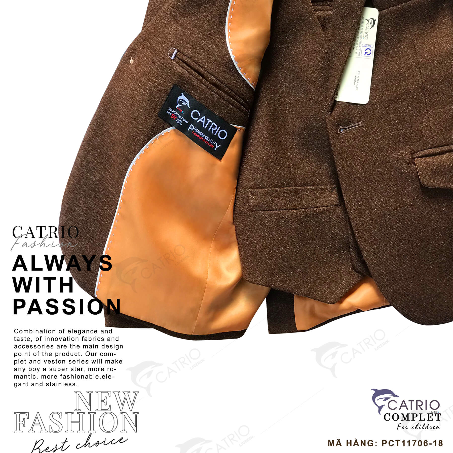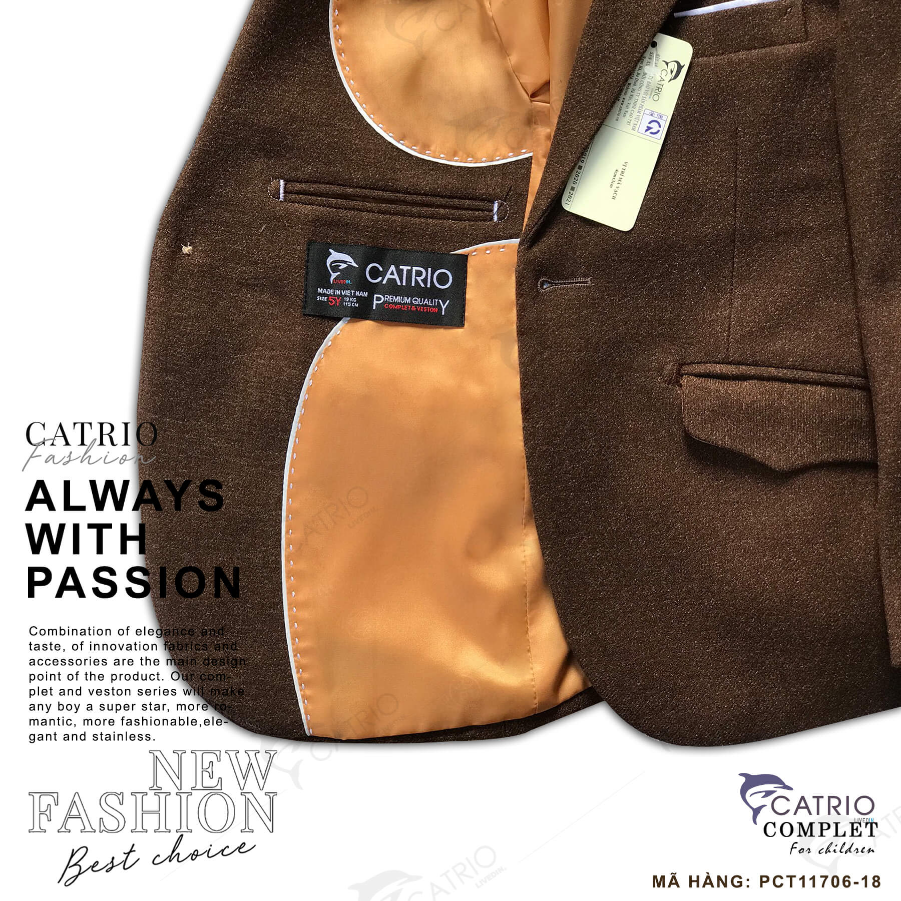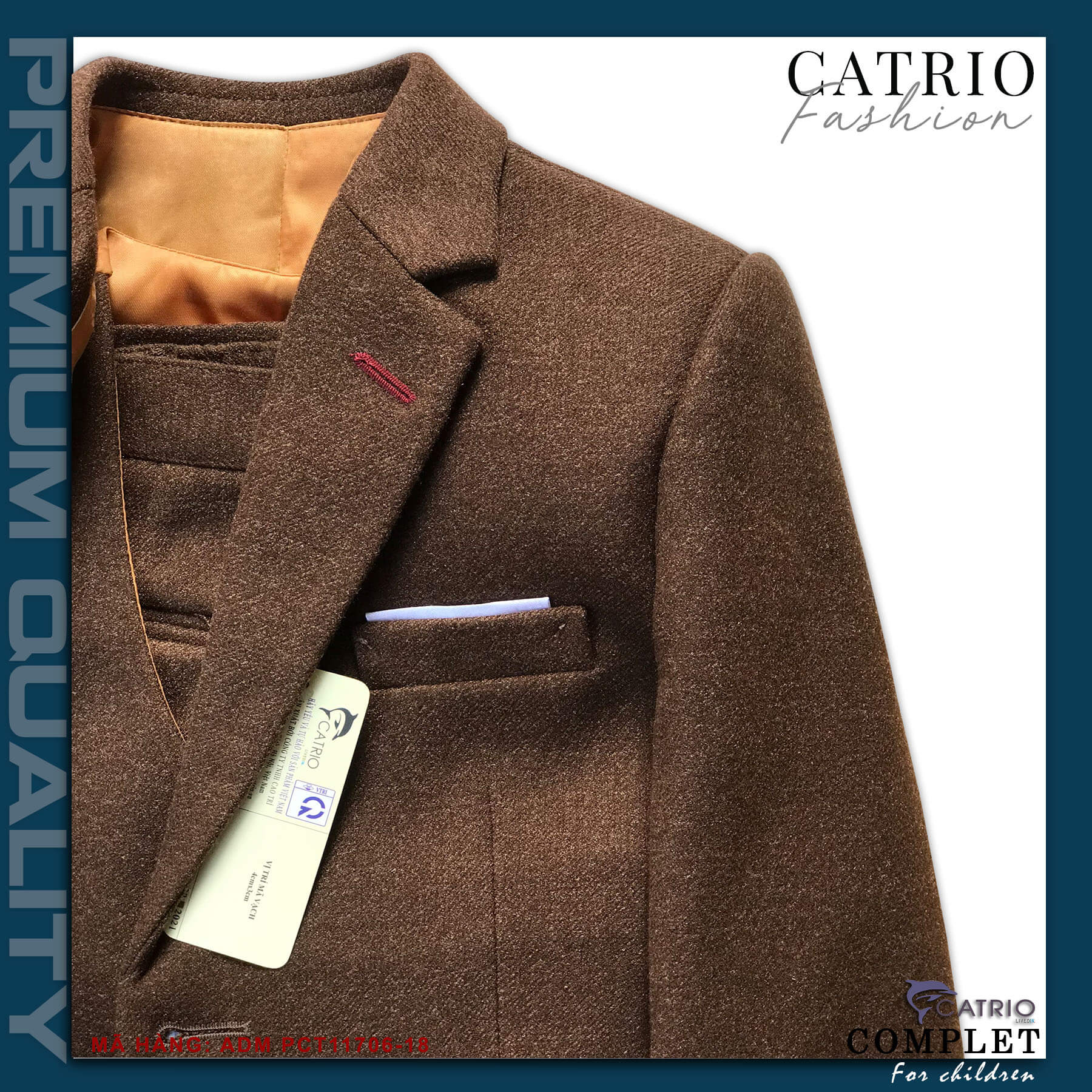 ÁO VEST TRẺ EM CATRIO MÃ PCT11706/18 là áo đờ mi bé trai, áo khoác vest trẻ em từ 2 tuổi 12kg đến 12 tuổi 50kg vải dạ mềm mượt tuyệt đẹp khi kết hợp với quần jean, quần kaki thành bộ cho bé trai mặc đi chơi tết, đám cưới, tiệc sinh nhật
