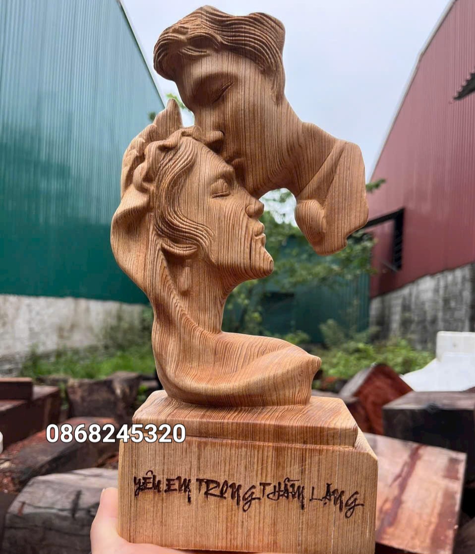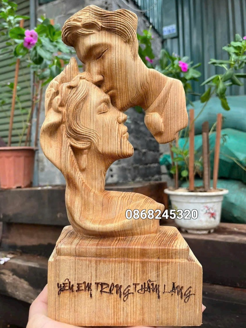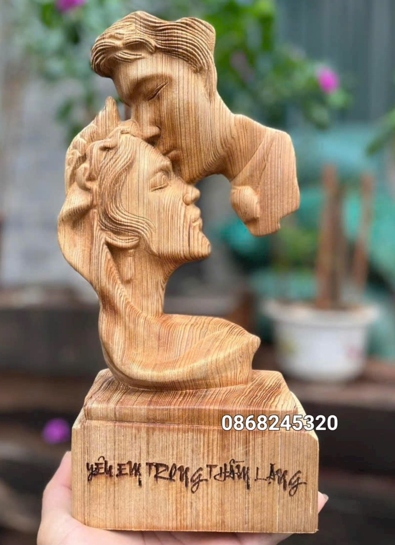 _ Tượng phu thê viên mãn mãi mãi bên nhau trọn đời được làm bằng chất liệu gỗ ngọc âm liền khối tự nhiên 100%