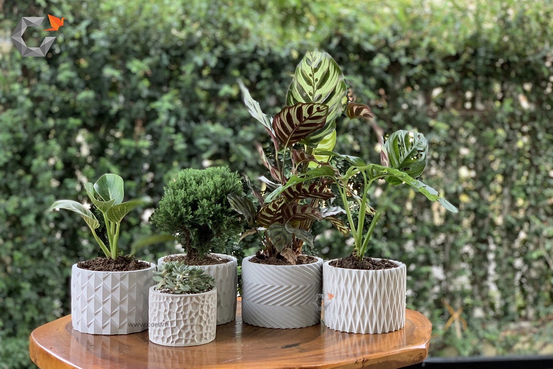 - Bộ chậu mới với chất liệu xi măng thiết kế kẻ ô với các gam màu trung tính, tinh tế sẽ là GỢI Ý HÒAN HẢO cho xu hướng nội thất tối giản sang trọng cho năm nay cho các showroom, văn phòng, căn hộ, quán ăn,