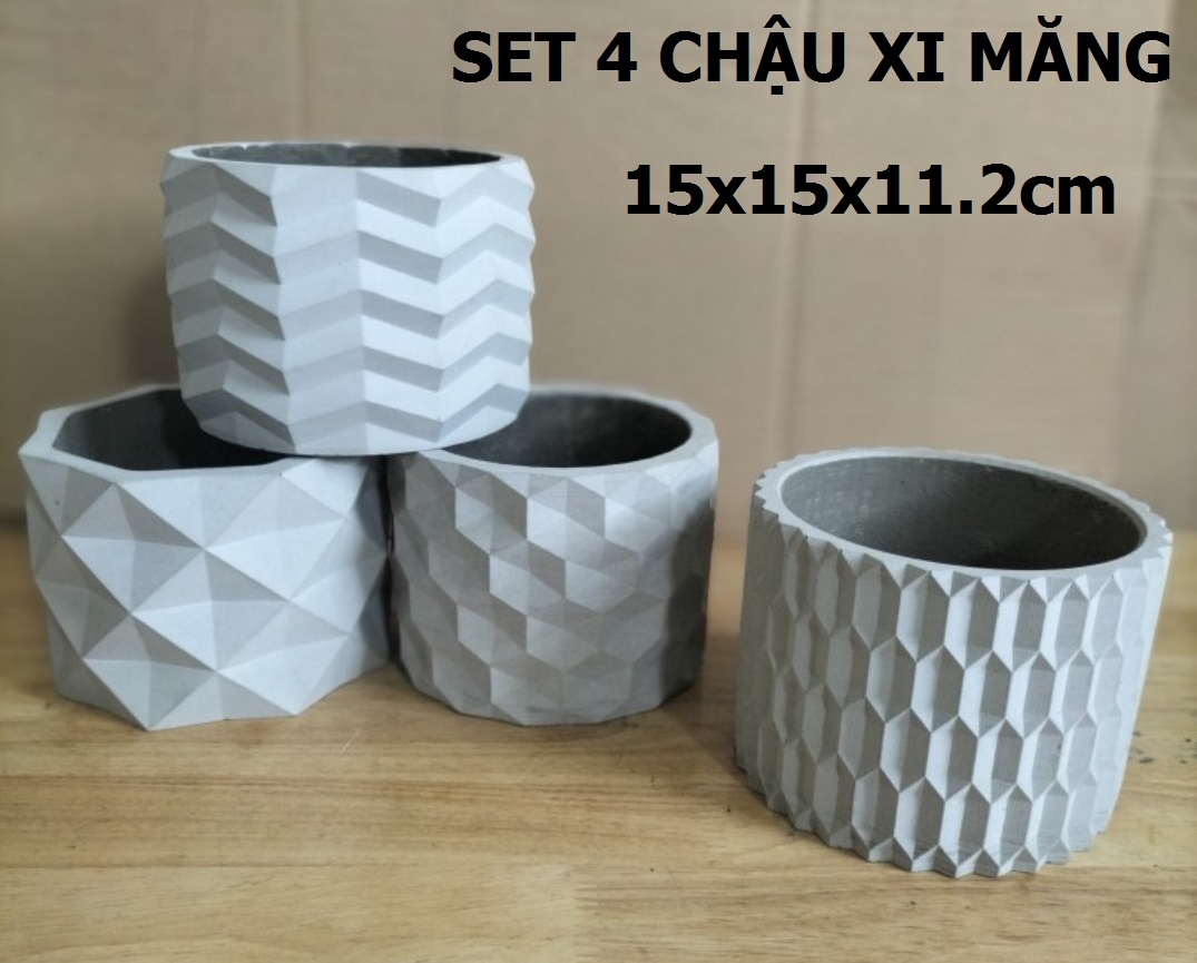 Combo 4 Chậu trồng sen đá, xương rồng bonsai cây cảnh bằng xi măng Origami hình trụ 15x11cm - Cement pots handmade Vintage / gift