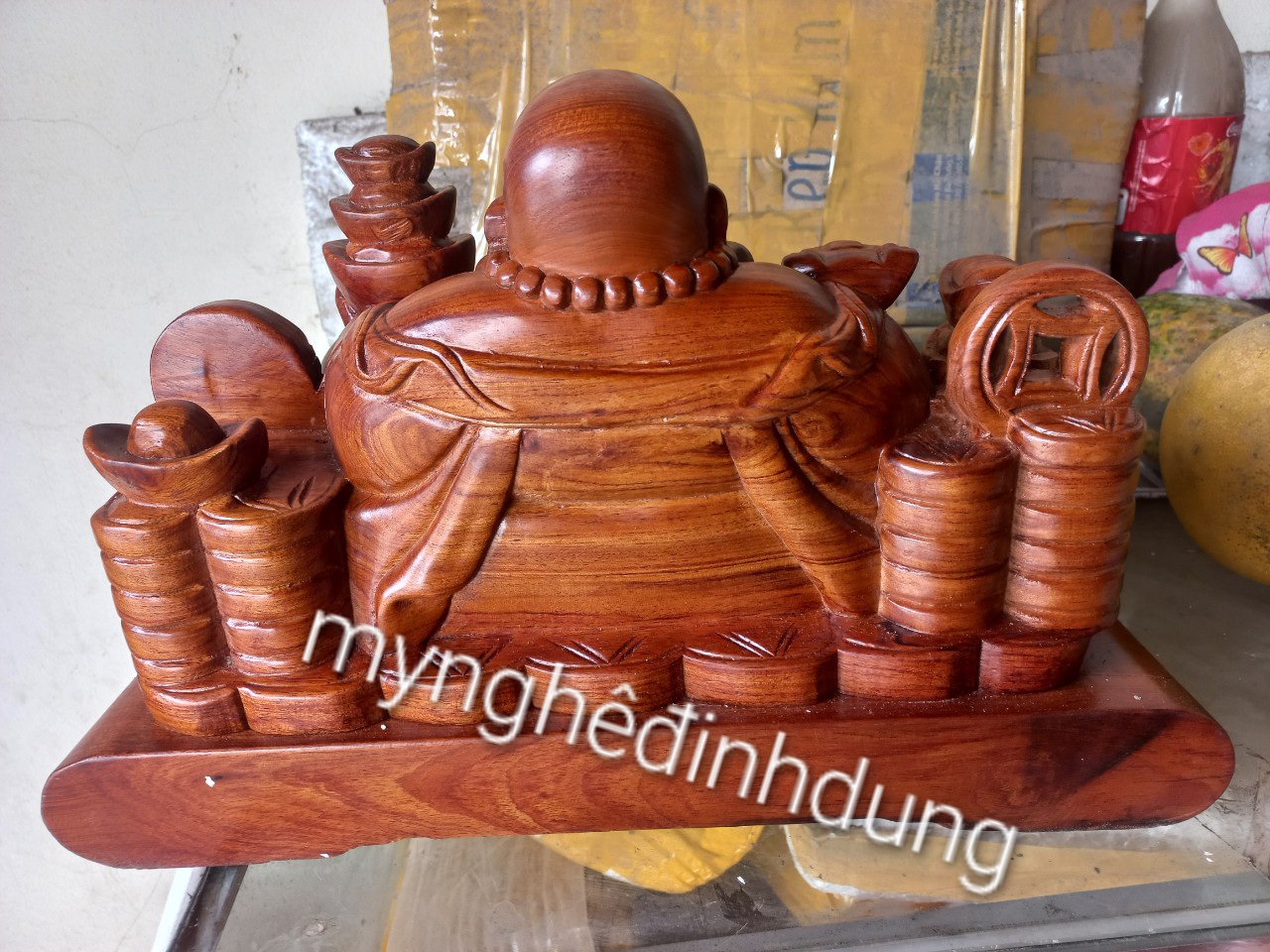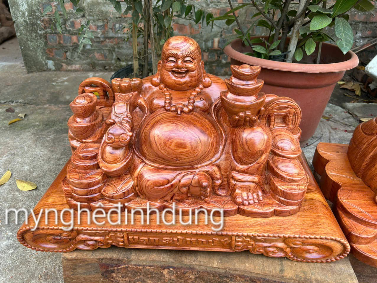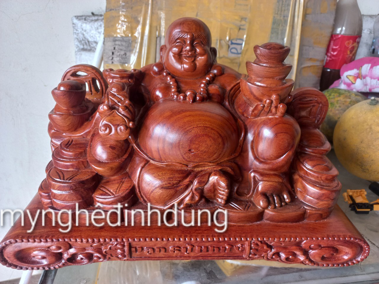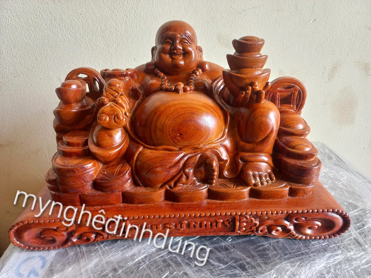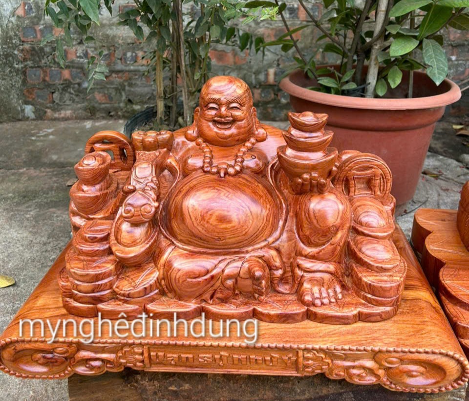 Giới thiệu Tượng phật di lặc phong thủy để bàn tiếp khách bằng gỗ hương đá kt 50×28×26cm