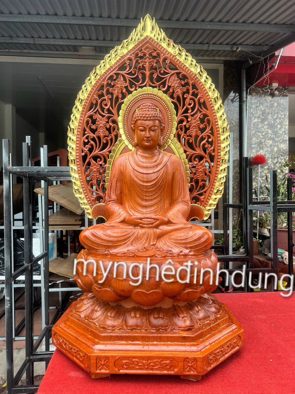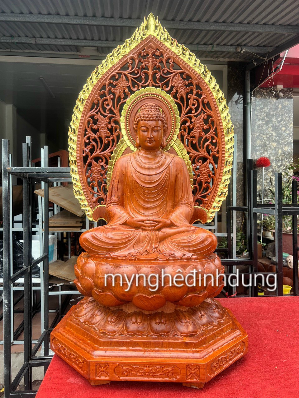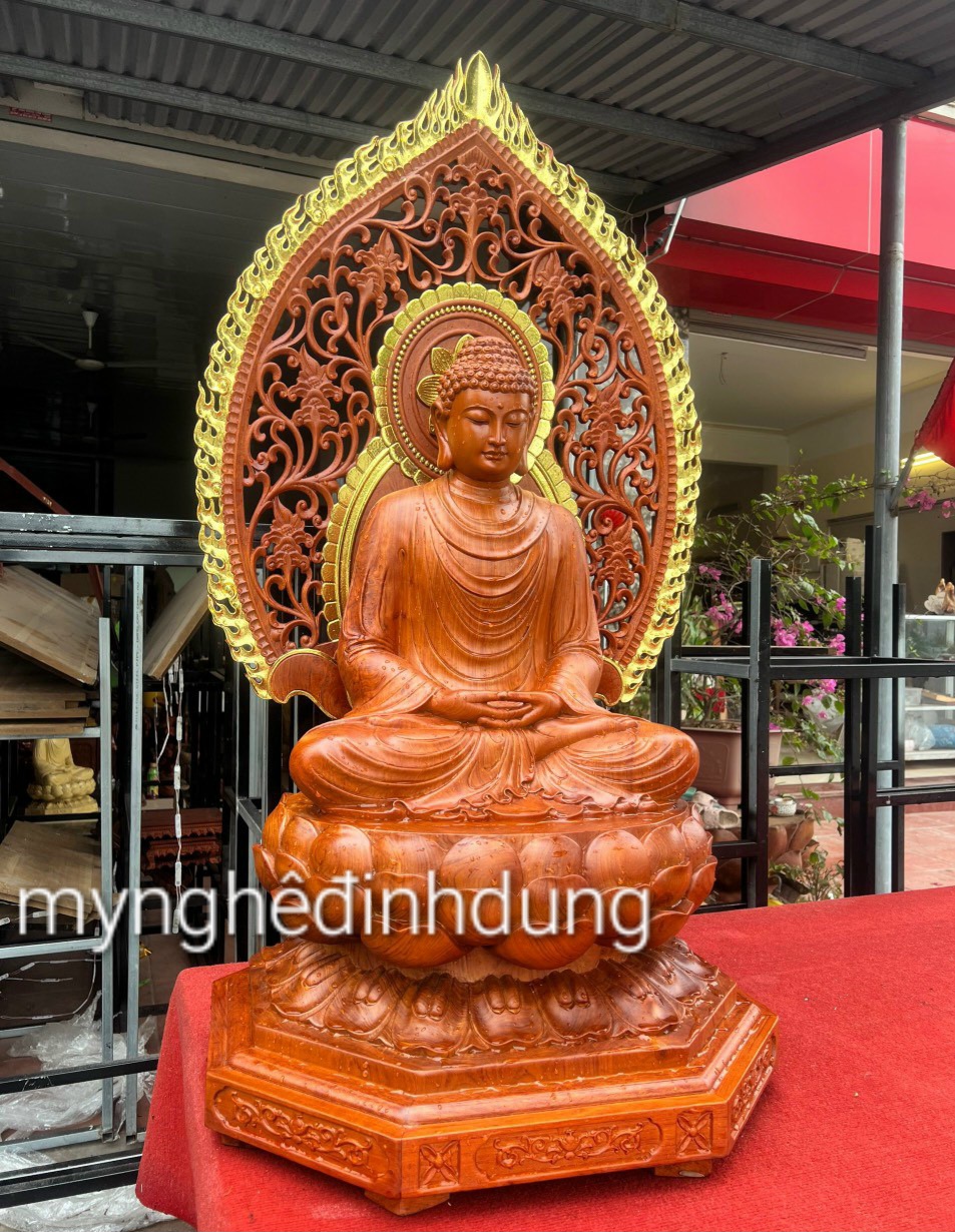Tượng phật thích ca bằng gỗ hương đá kt cao 60×36×36cm +lá chắn hào quang cao tổng 81cm