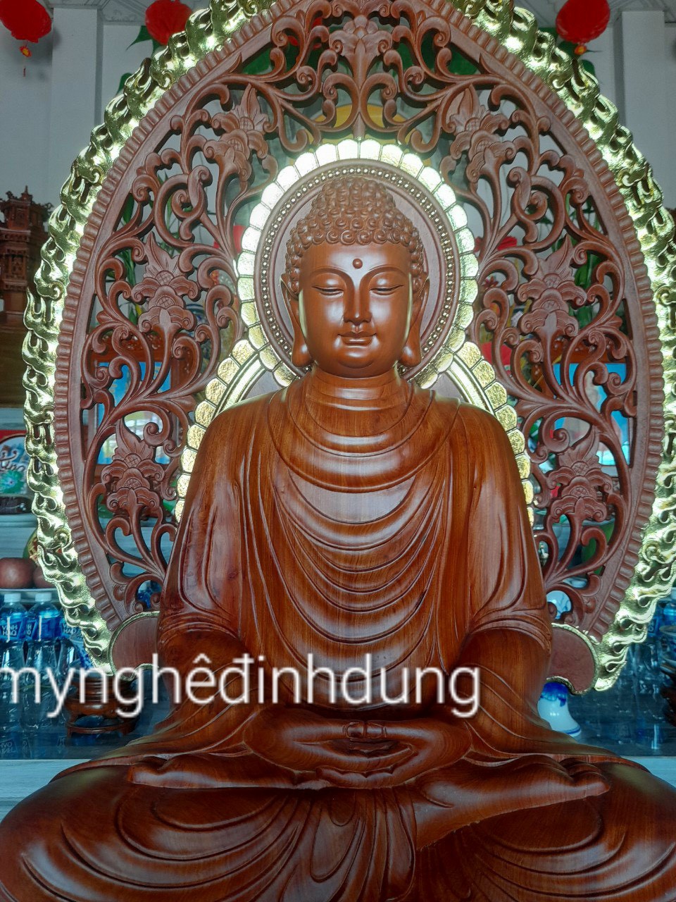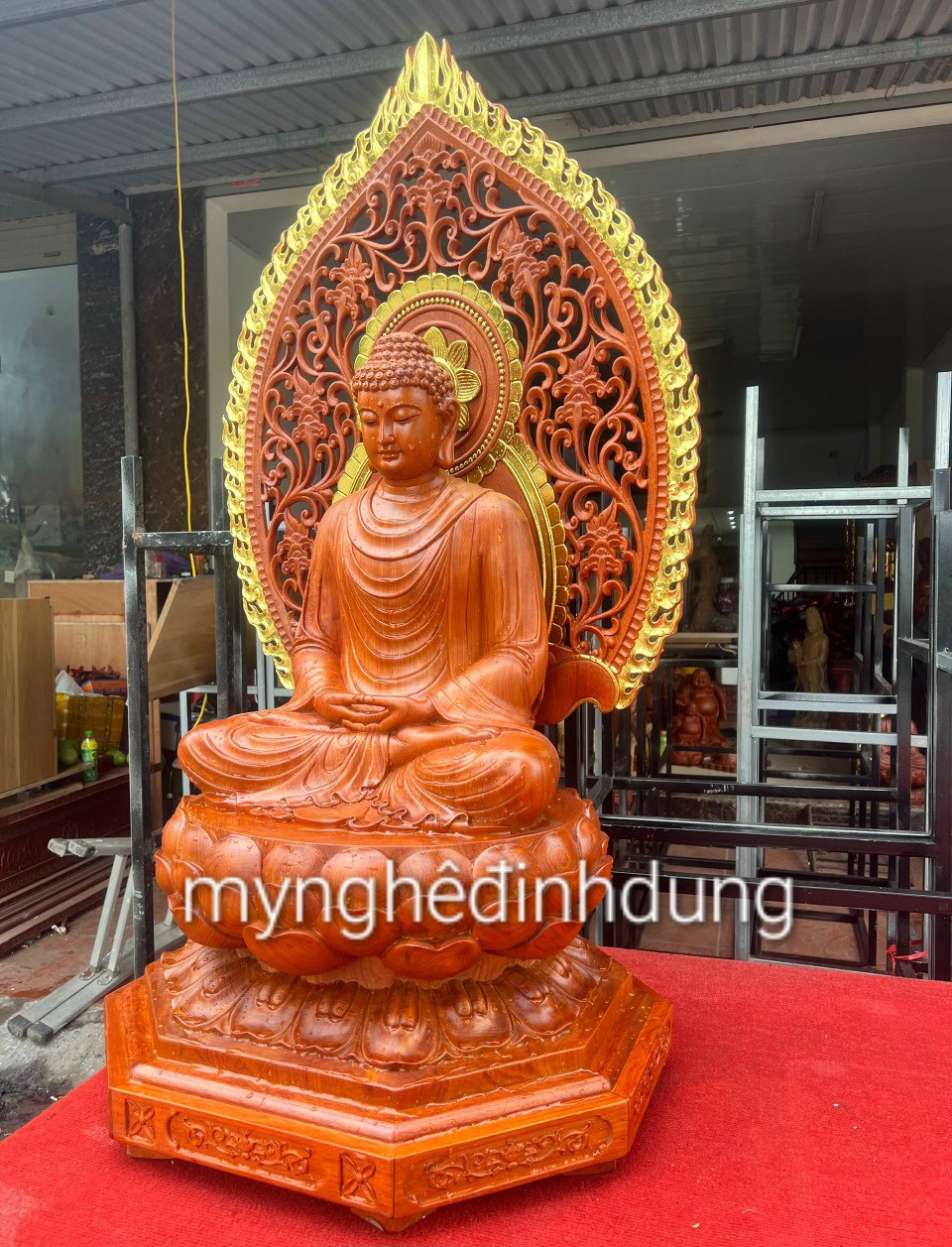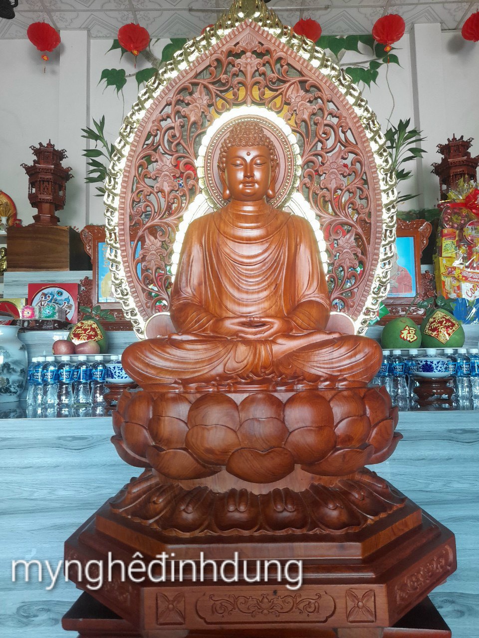 Tượng phật thích ca bằng gỗ hương đá kt cao 60×36×36cm +lá chắn hào quang cao tổng 81cm