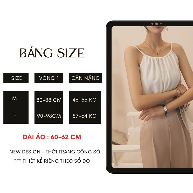 - Áo hai dây lụa cổ yếm thiết kế dây rút duyên dáng, Nàng có thể tùy chỉnh dây rút tạo phong cách trẻ trung cho nàng tự tin thu hút mọi ánh nhìn