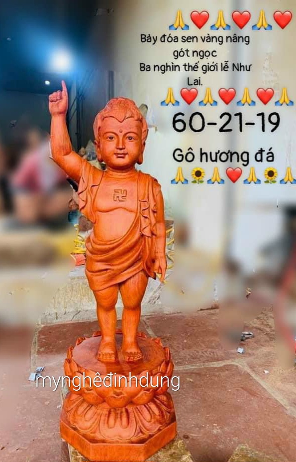 Giới thiệu Tượng phật đản sanh bằng gỗ hương đá kt cao 60cm