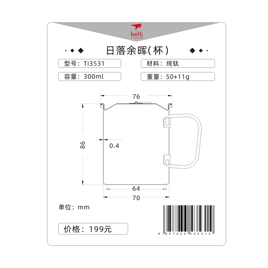 Cốc Titanium Keith có tay cầm và nắp đậy họa tiết Sunset Glow, Wild Camp Ti3533/ Ti3534/ Ti3531/ Ti3532/ Ti3536/ Ti3538