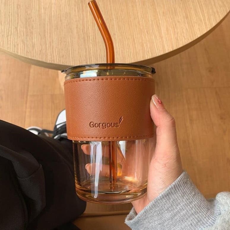 Mua Cốc Thủy Tinh Bọc Da Có Nắp Kèm Ống Hút, Ly Thuỷ Tinh GorGous Bọc Da Sang Chảnh Chống Bỏng Pha Sữa Cafe 450ml Giao Màu Ngẫu Nhiên giá rẻ nhất ở đâu?Giới thiệu Cốc Thủy Tinh Bọc Da Có Nắp Kèm Ống Hút, Ly Thuỷ Tinh GorGous Bọc Da Sang Chảnh Chống Bỏng Pha Sữa Cafe 450ml Giao Màu Ngẫu Nhiên