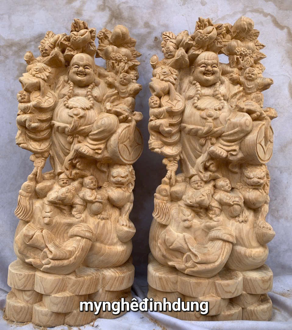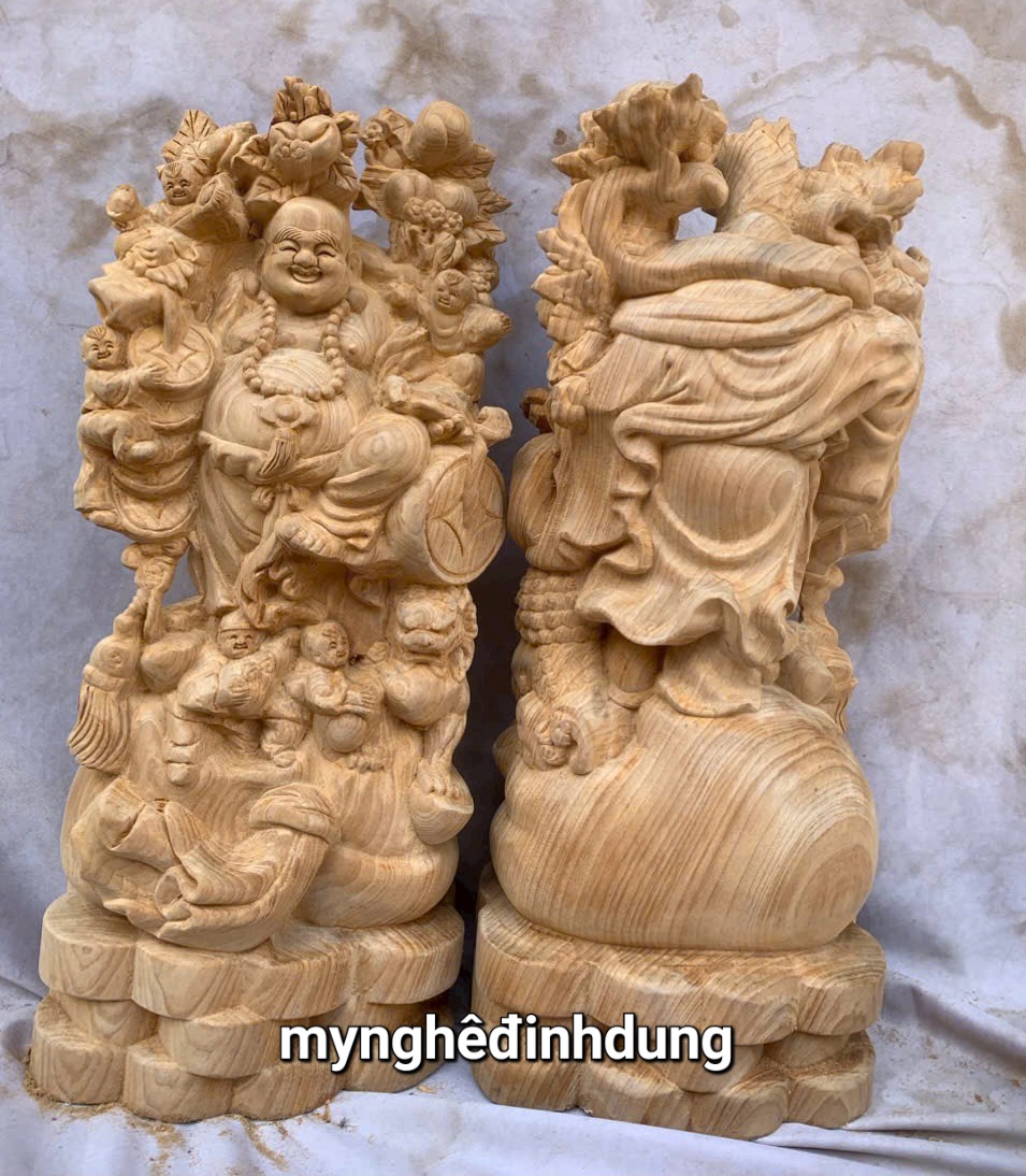 _ Tượng được chạm khắc gọt tỉa vô cùng tỉ mỉ tinh xảo kỳ công. Đi hầu hết tất mọi chi tiết góc ngách nội dung hoa văn của tượng đều được gọt tỉa chỉnh sửa sắc nét hoàn toàn bằng tay thủ công truyền thống.