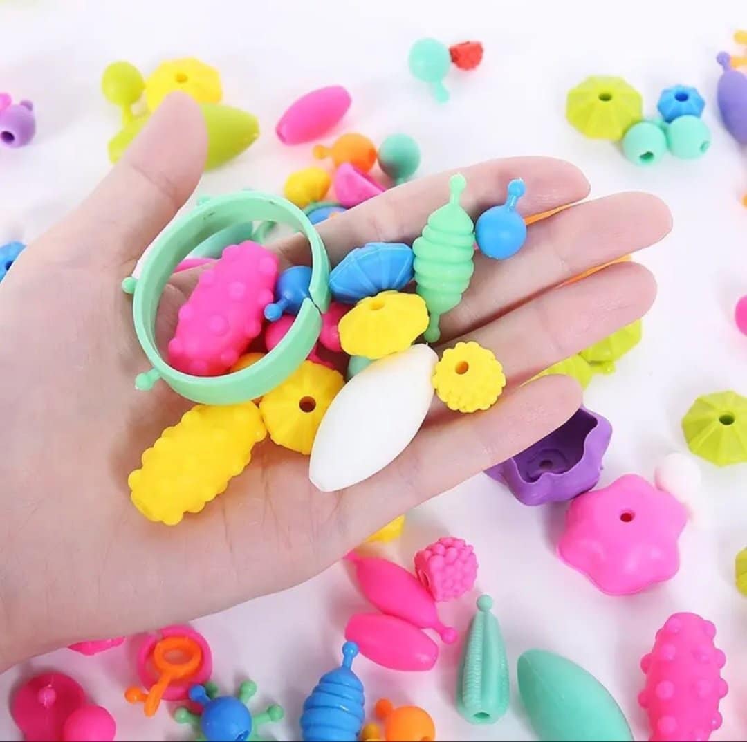 Với bộ đồ chơi này bé thoả sức sáng tạo để tự xâu vòng tay, vòng cổ hạt cườm siêu cute.