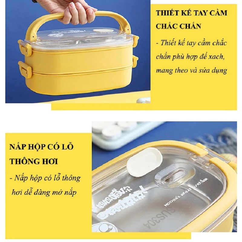 - Hộp cơm giữ nhiệt với lòng hộp là inox 304 cực an toàn khi đựng thực phẩm