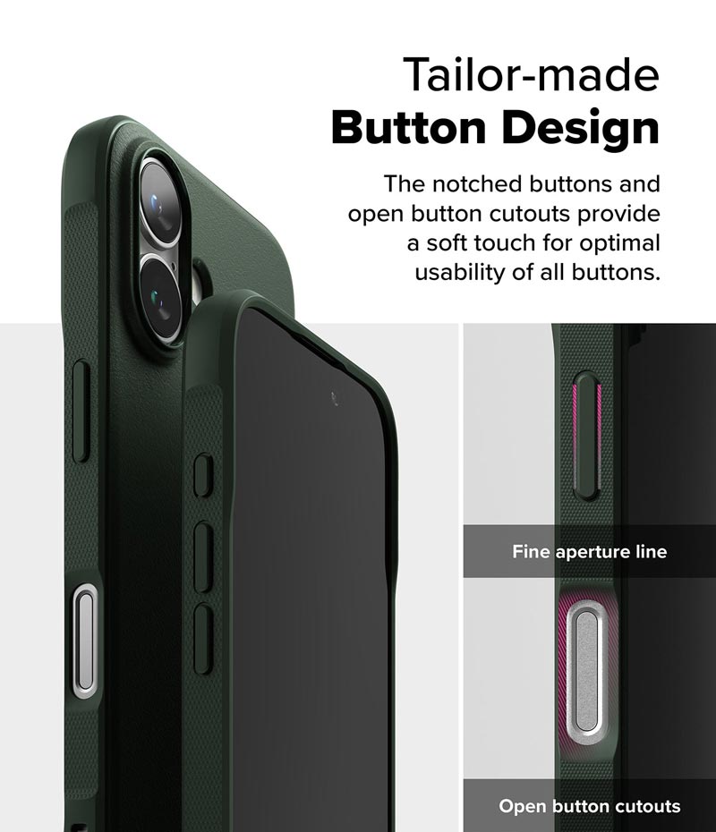 Do thiết kế phần camera của iPhone 16/16 Plus khác với iPhone 16 Pro/16 Pro Max nên dòng ốp Onyx cũng có sự khác nhau ở vị trí camera. Với dòng máy iPhone 16 Pro/16 Pro Max, phần camera được thiết kế cụm nguyên khối, trong khi dòng máy iPhone 16/16 Plus thì phần camera khoét lỗ.