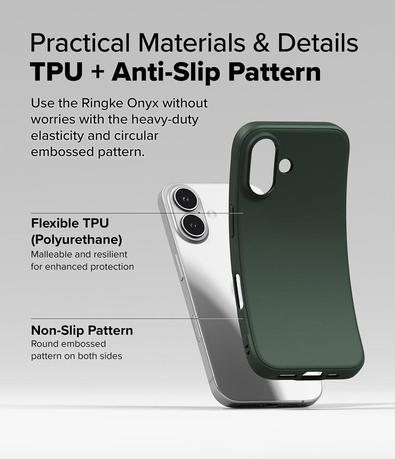 Ốp lưng iPhone 16 RINGKE Onyx cạnh viền lỗ camera nhô cao 1.2 mm giúp chống trầy, ốp đạt chuẩn chống sốc Quân đội, chất liệu nhựa dẻo TPU vừa vặn hoàn toàn với thiết bị.