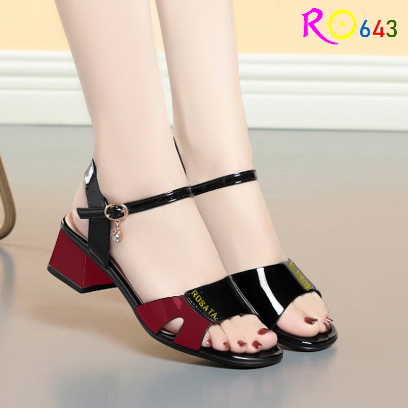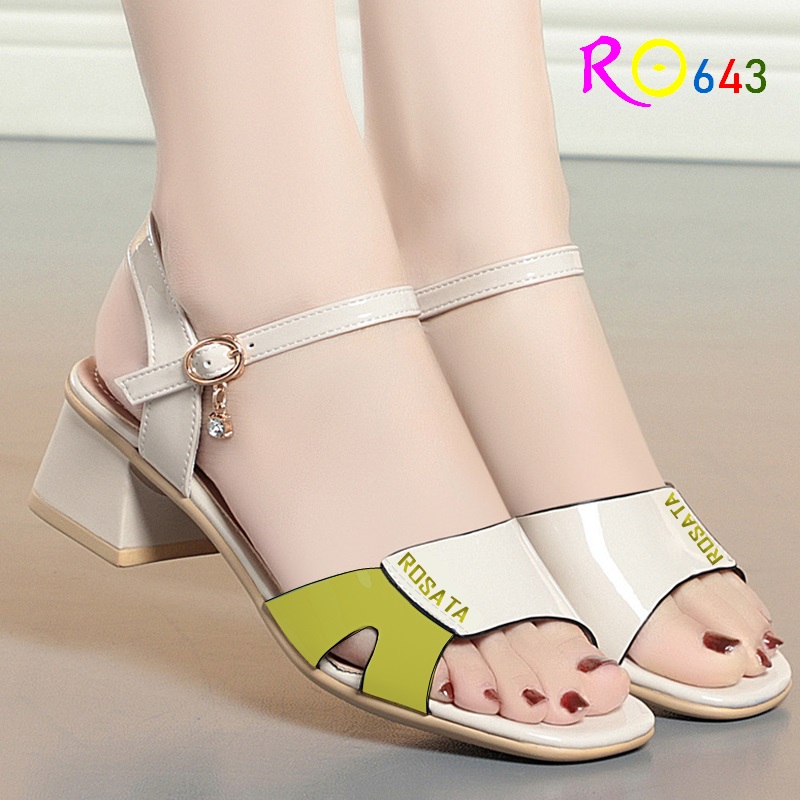 Giày sandal nữ cao gót 4 phân hàng hiệu rosata hai màu đen trắng thời trang cao cấp ro643