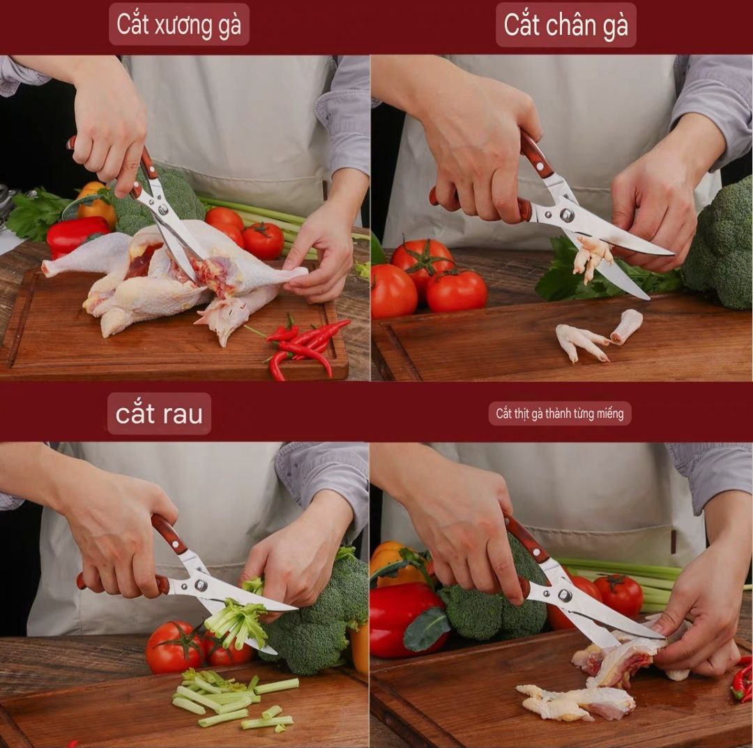 - Công dụng: cắt thịt gà, cắt xương gà, hành lá xắt nhỏ, trái cây và rau củ,