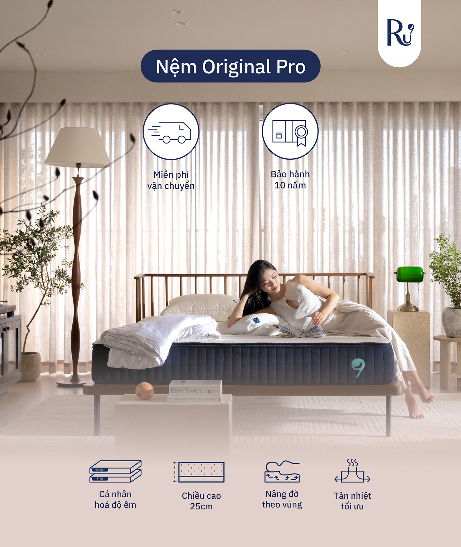 - Nệm Original Pro với thiết kế 3 vùng nâng đỡ dành cho đầu - thân - chân, ôm trọn cơ thể. Công nghệ Graphene Memory Foam độc quyền giúp nệm luôn mát mẻ và thoáng khí. Cùng 2 sự lựa chọn độ êm Firm (chắc chắn hơn) hoặc Medium (mềm mại hơn) phù hợp với nhu cầu và sở thích, giúp bạn có giấc ngủ hoàn hảo.