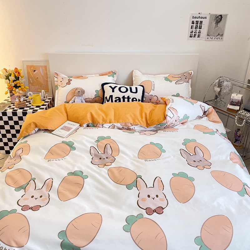 Bộ chăn ga gối phong cách Hàn Quốc có thiết kế độc đáo với nhiều họa tiết sinh động, đáng yêu cùng gam màu tươi sáng.