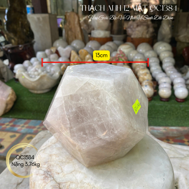 Quả cầu thạch anh 12 mặt NHASAN QC1384 nặng 3.76kg, đường kính 13cm, mặt cạnh 9cm
