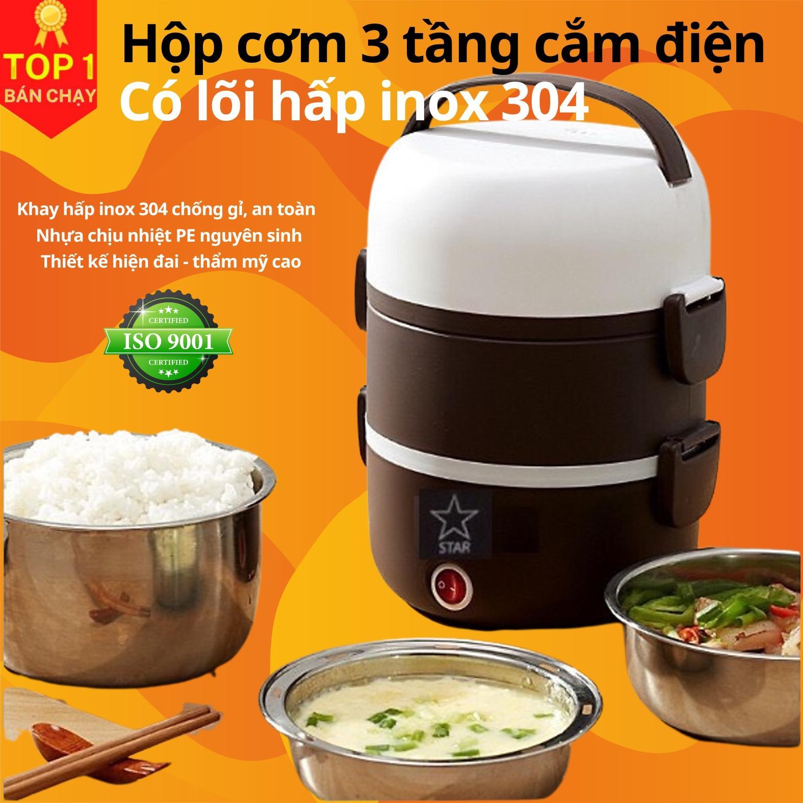 Bộ Hộp Cơm Giữ Nhiệt Văn Phòng Cao Cấp Cắm Điện inox 3 tầng
