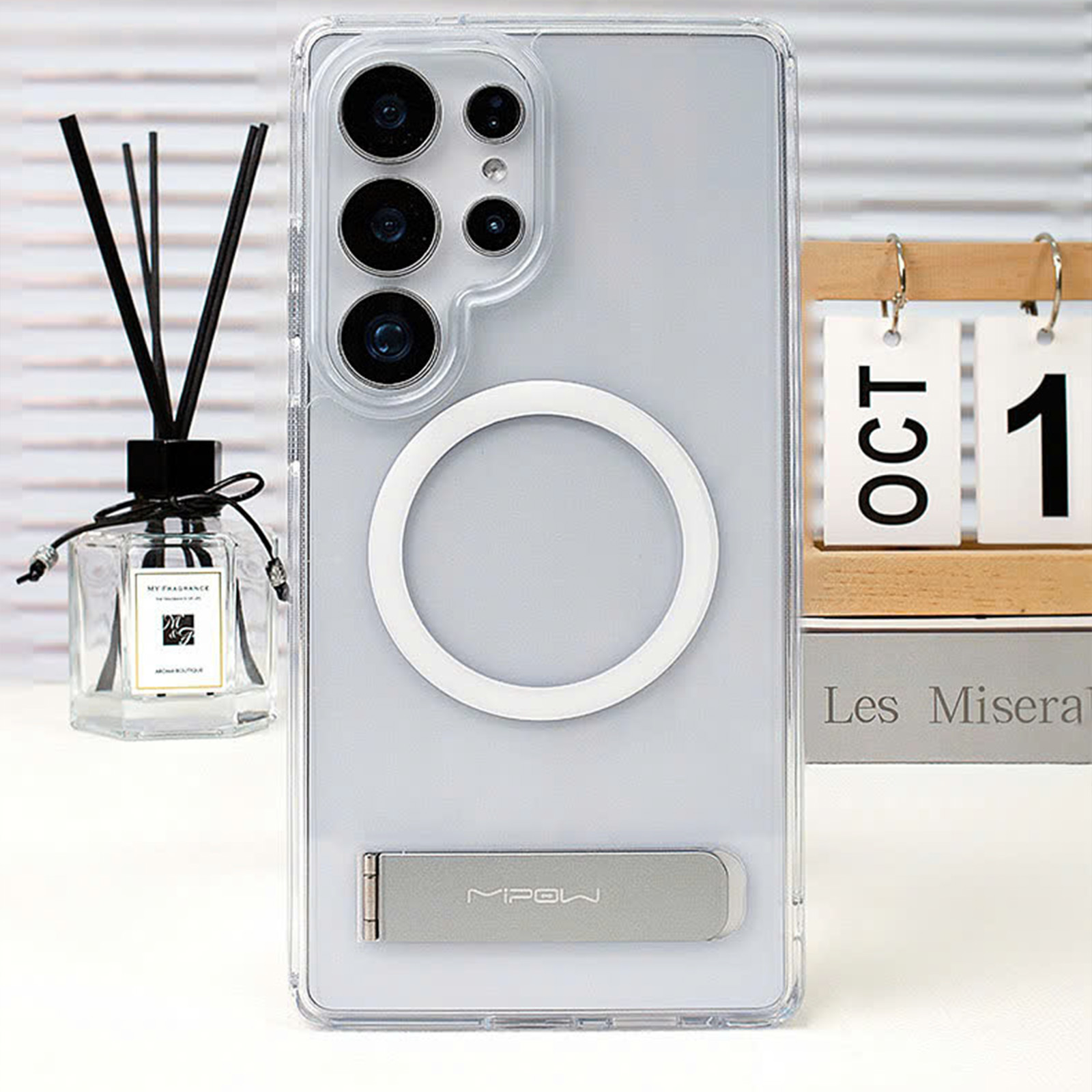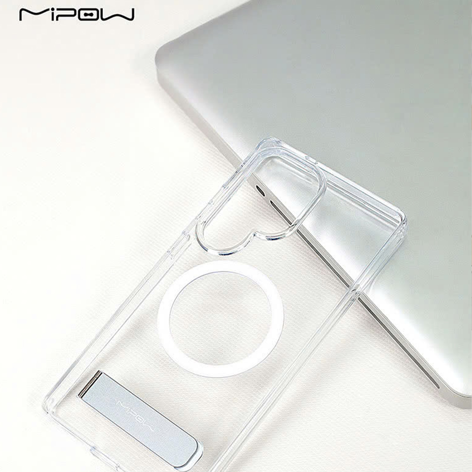Ốp lưng có Chân Chống Sạc Từ Tính Mipow Qi2 Tempered Stand Transparent (Bayer Germany) cho Samsung Galaxy S25 Ultra_ Hàng Chính Hãng