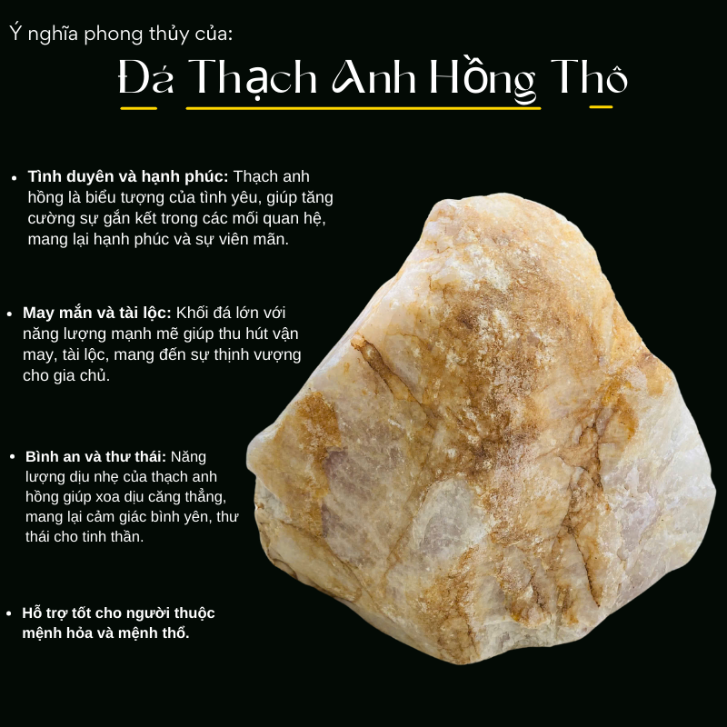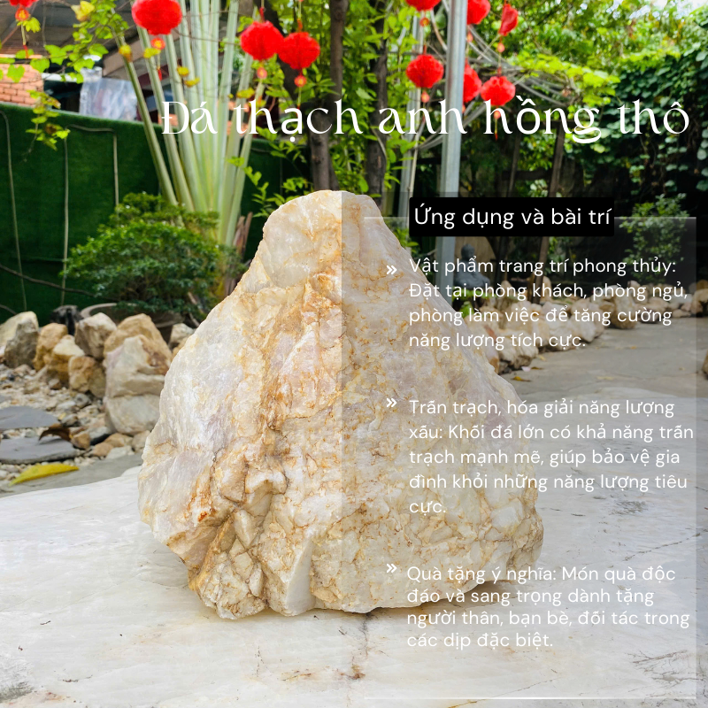 - Vỗ về tâm hồn, xua tan mệt mỏi: Năng lượng từ khối đá thạch anh hồng thô như một liều thuốc tinh thần, giúp bạn tìm lại sự cân bằng và bình yên trong cuộc sống.