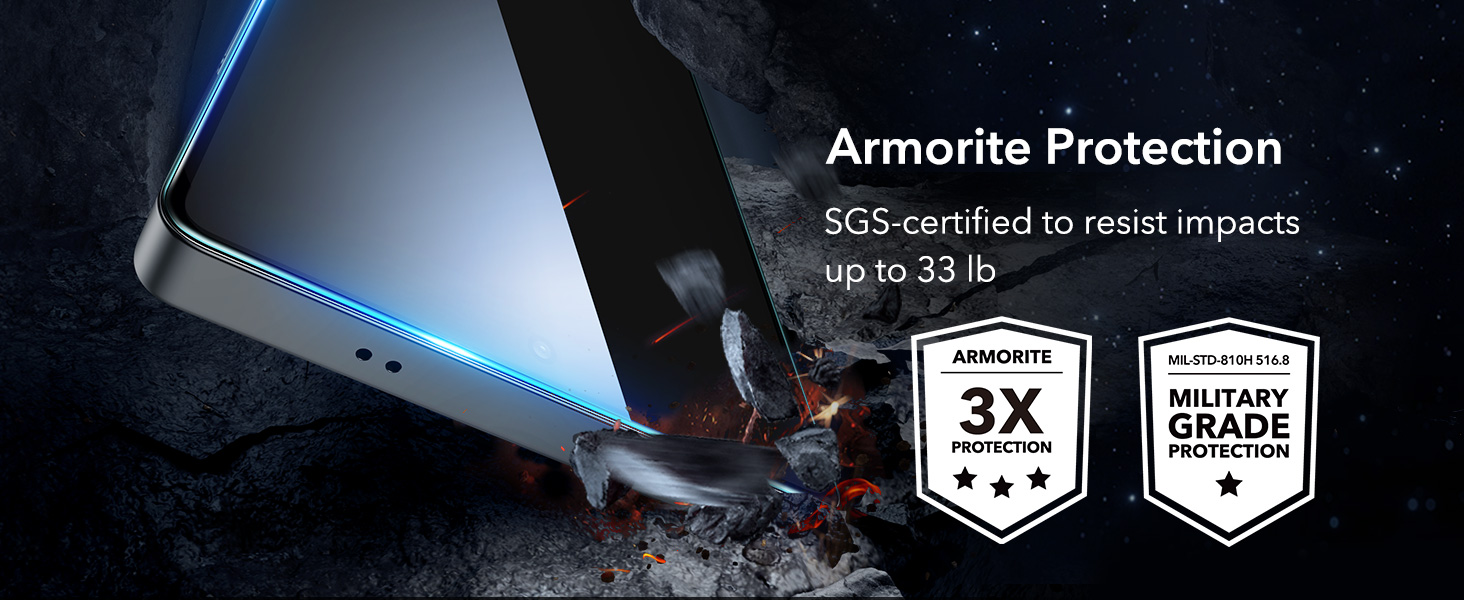 Bảo vệ tối ưu: được làm từ kính cường lực Armorite chất lượng cao có khả năng chống va đập lên đến 110 lb, giúp màn hình của bạn an toàn khỏi bị rơi, va đập và trầy xước