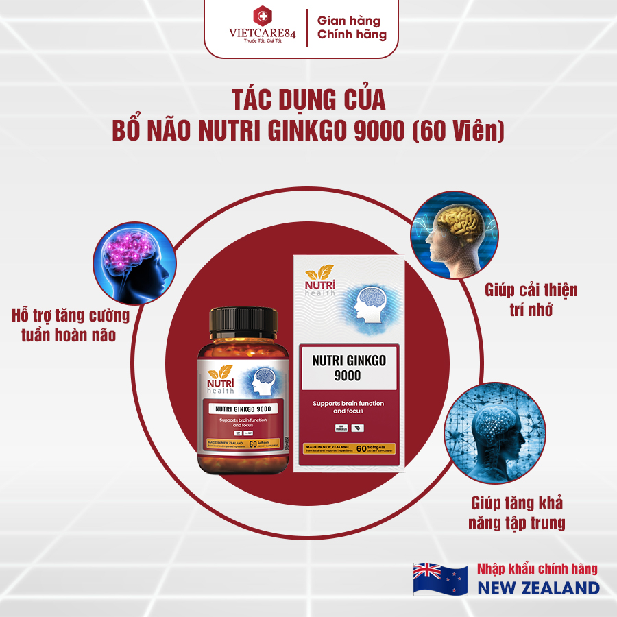 Giới thiệu Viên Uống Bổ Não Nhập Khẩu Chính Hãng New Zealand Nutri Ginkgo 9000 (60 Viên)