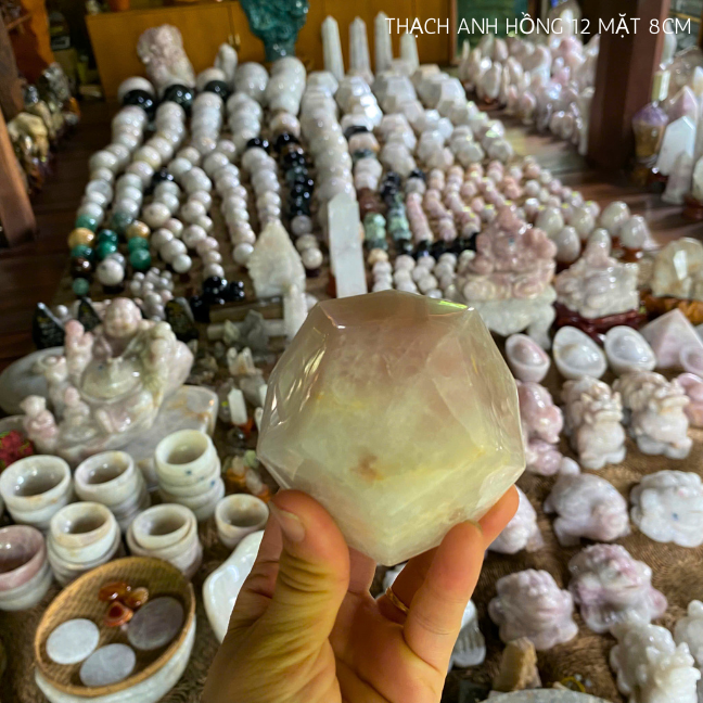 Giới thiệu Thạch anh hồng 12 mặt 8cm NHASAN QC1412 Hút vượng khí nặng 520gr