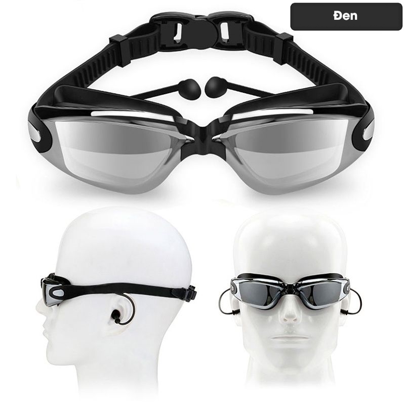 Kính bơi nam nữ tráng gương cao cấp có bịt tai