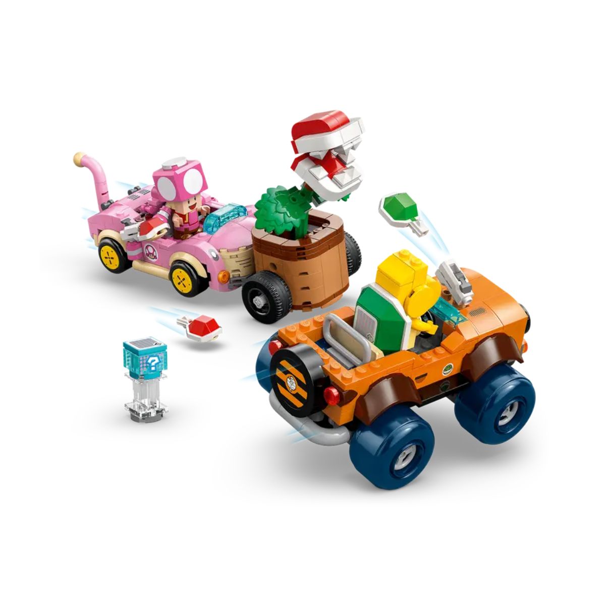 Hãy lái xe, drift và phóng vỏ sò từ những chiếc xe kart. Đặt LEGO Mario, LEGO Luigi hoặc LEGO Peach (không đi kèm) vào xe để kích hoạt âm thanh và hiệu ứng hình ảnh như trong trò chơi Mario Kart, đồng thời nhận vật phẩm ngẫu nhiên từ Hộp Item! Nhưng ai sẽ nhận được Cây Ăn Thịt Piranha? Điều đó là do bạn quyết định!