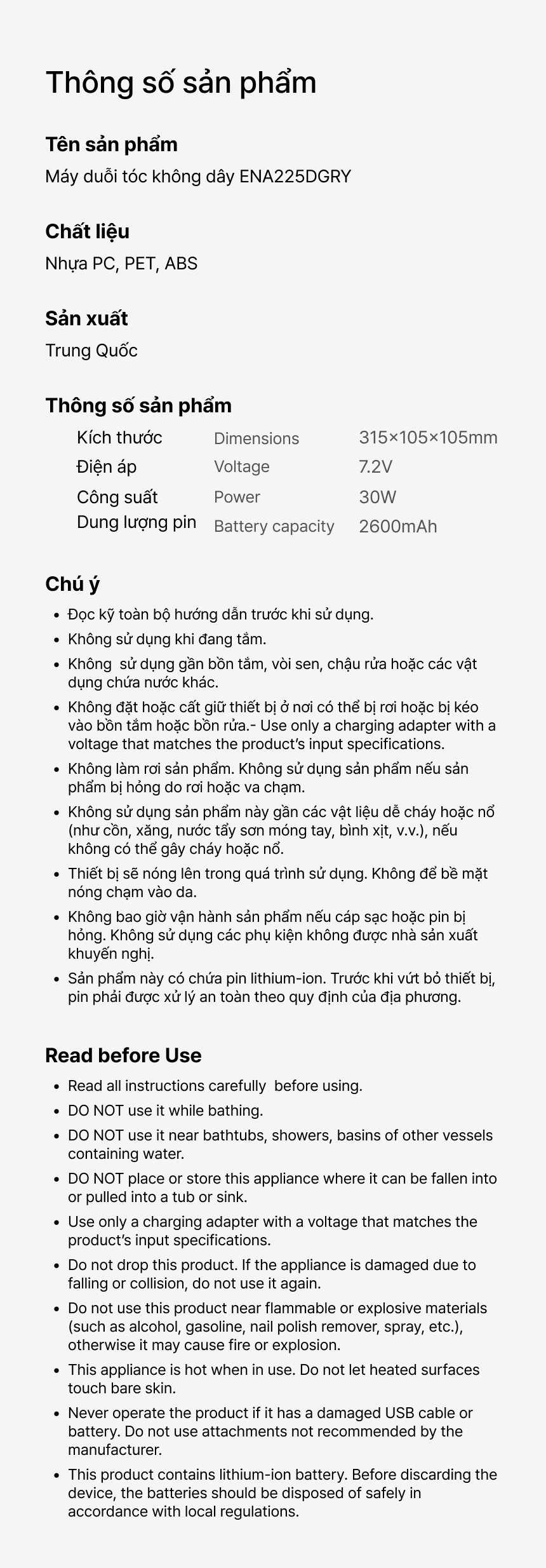 - Đọc kỹ toàn bộ hướng dẫn trước khi sử dụng.