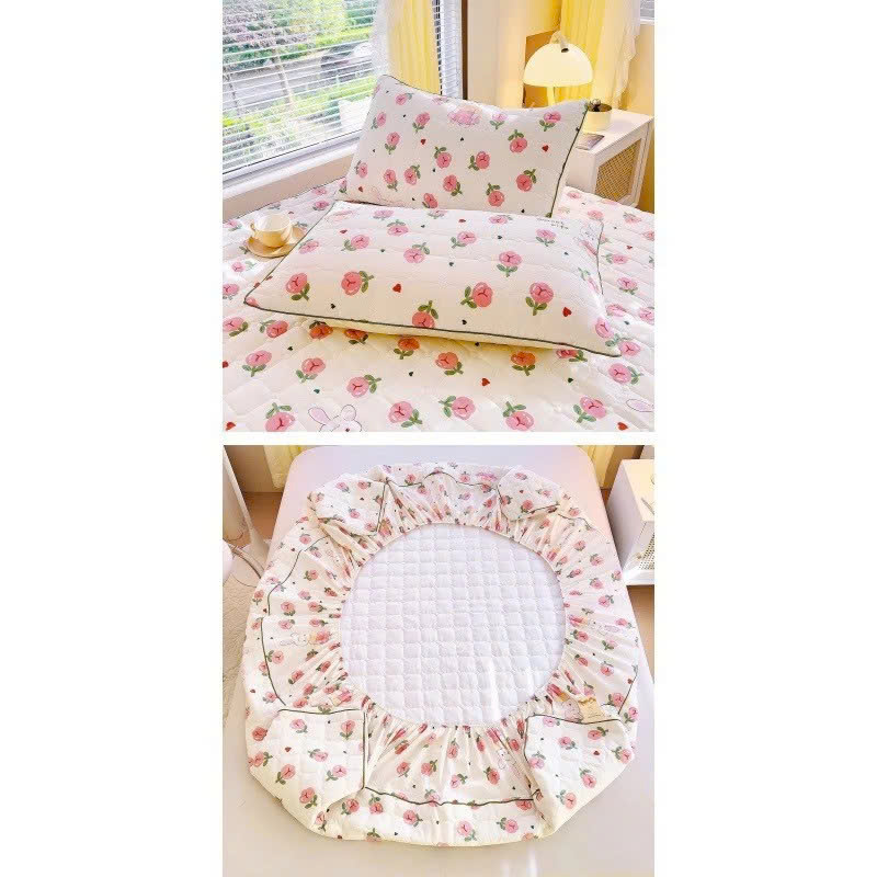 + 01 ga giường chần bông bo chun theo size nêm (dùng được nệm 12cm trở xuống)