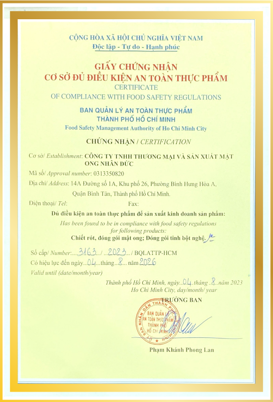SẢN PHẨM ĐƯỢC SẢN XUẤT PHÂN PHỐI BỞI MẬT ONG NHÂN ĐỨC TẠI TP.HCM