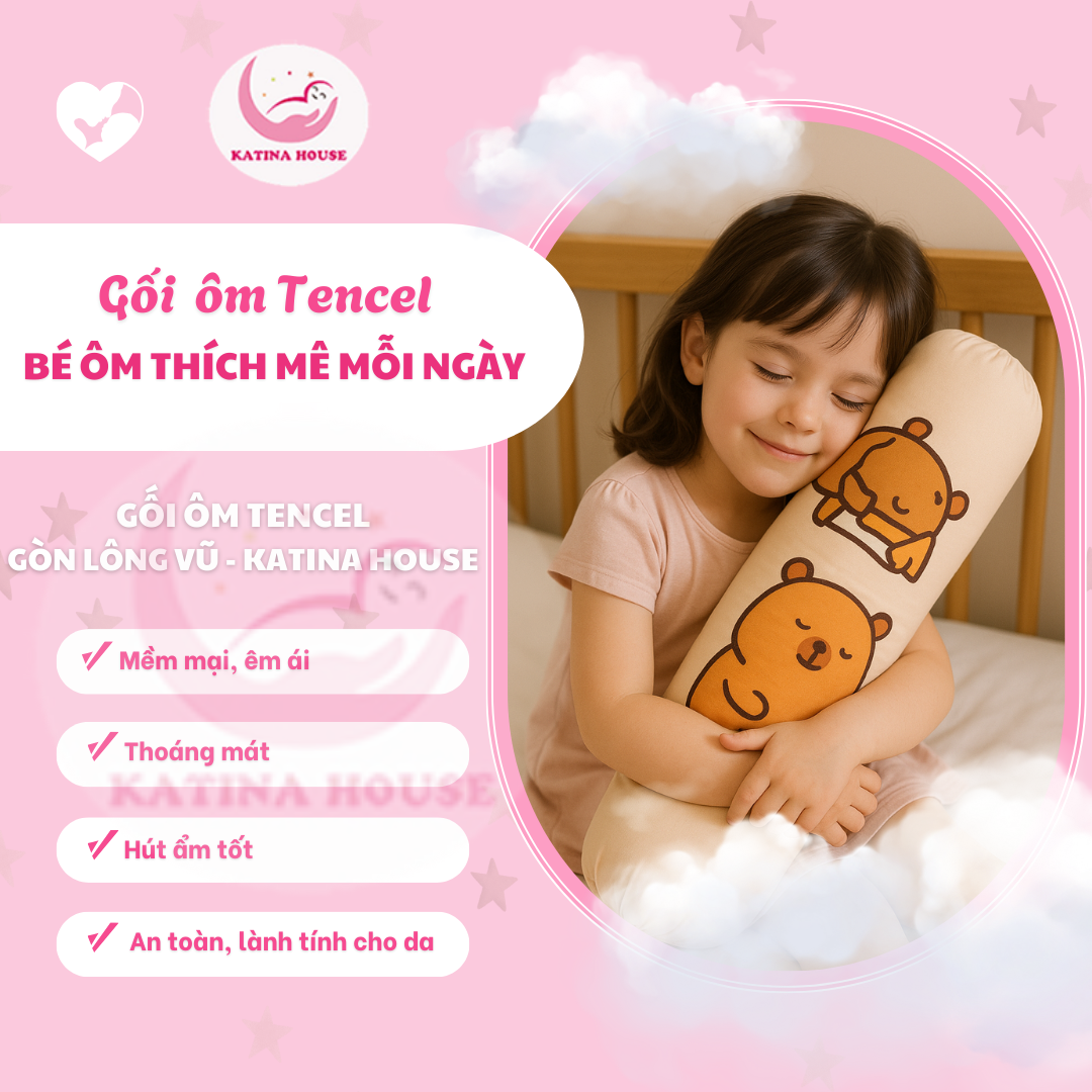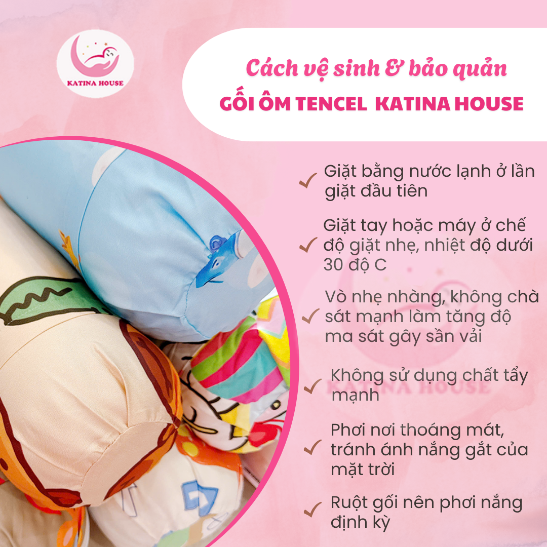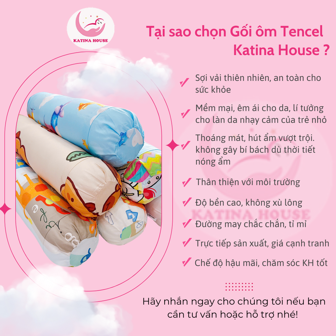 Giới thiệu Gối ôm gòn lông vũ 70cm Katina House, cho bé 1-5t vải tencel mịn mát, êm ái