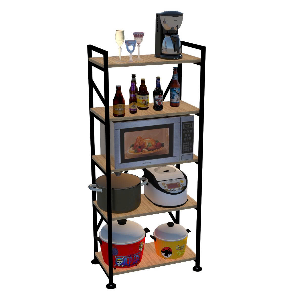 Kệ Đa Năng 3/5 Tầng Khung Sắt Mặt Gỗ Chắc Chắn Dễ Dàng Lắp Ráp Dùng Cho Nhà Bếp, Sắp Xếp Nhà Cửa, Decor