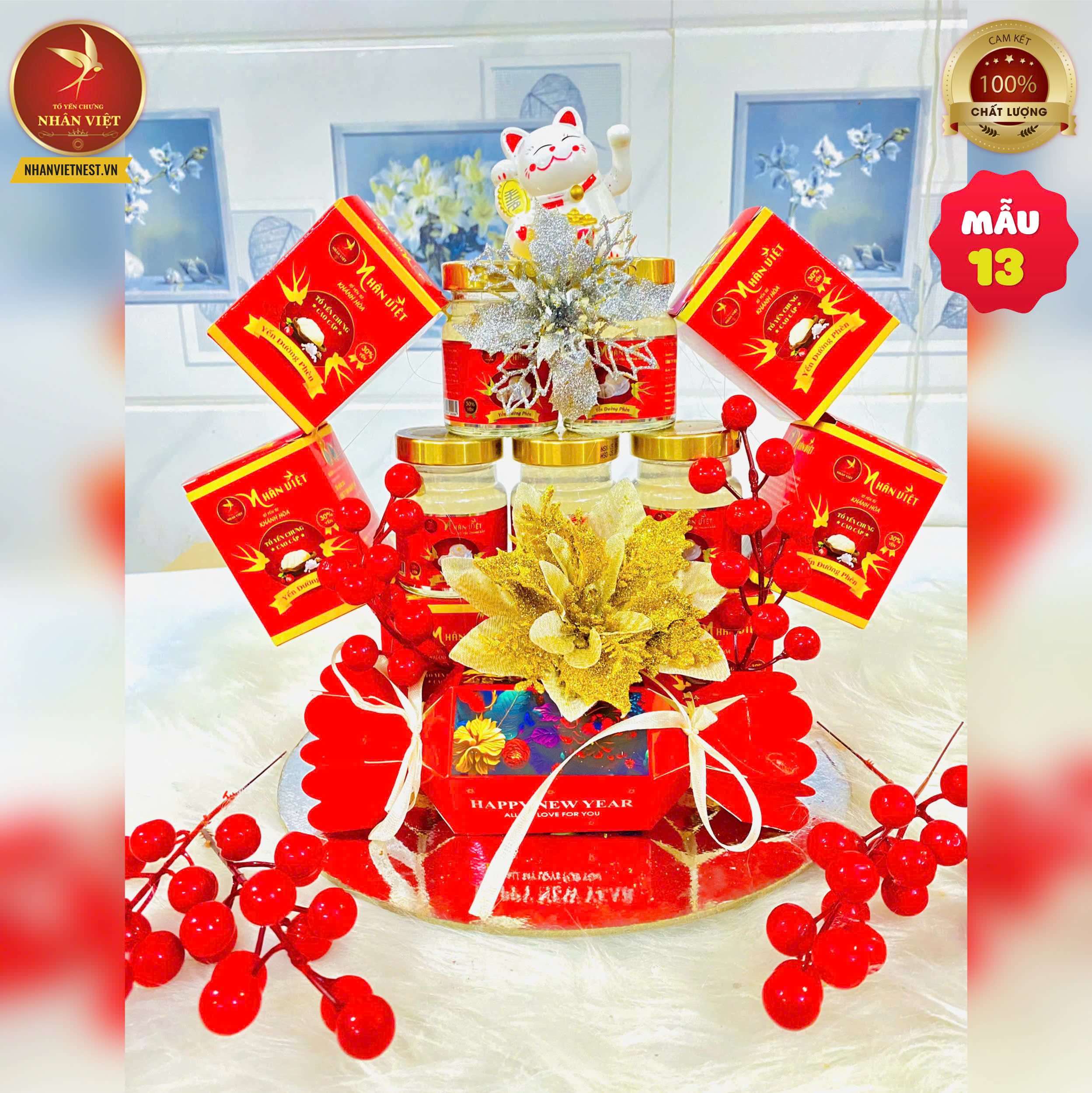 Giới thiệu THÁP QUÀ TẾT YẾN SÀO NHÂN VIỆT 2026 MÃ ĐÁO THÀNH CÔNG (MẪU 13)