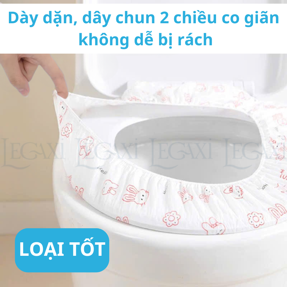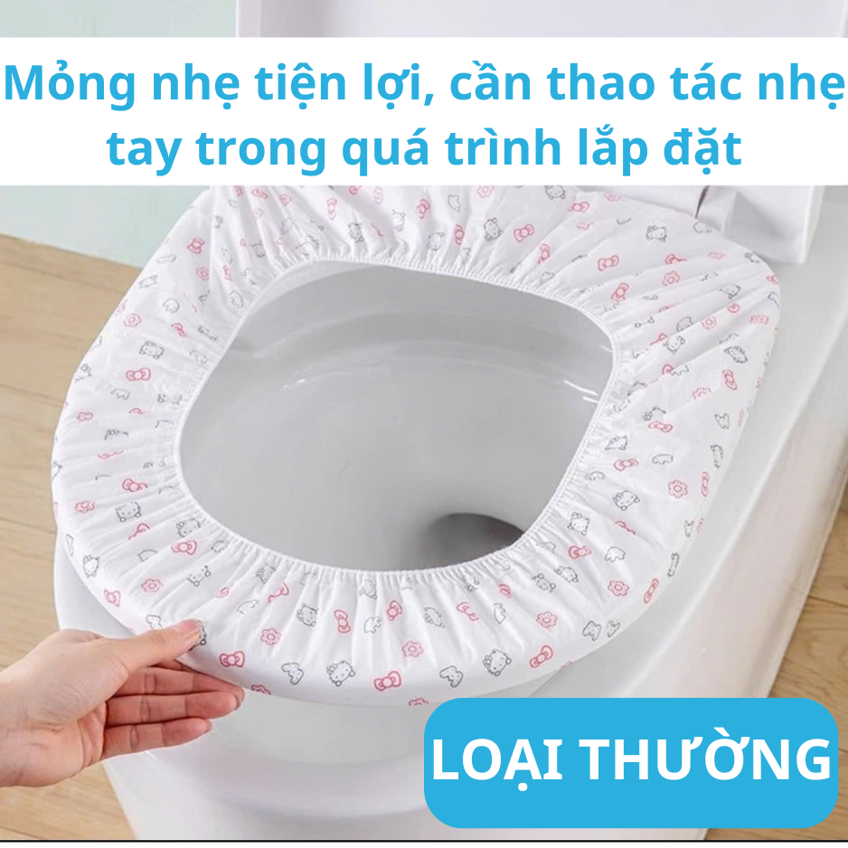 Miếng lót toilet dùng 1 lần, vệ sinh – tiện lợi, Thiết kế có thun, ôm sát nắp bồn cầu, không xô lệch, Dùng khi đi du lịch, nơi công cộng, toilet khách sạn, bệnh viện, công ty, trung tâm thương mại, ....